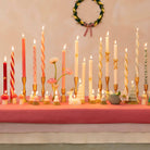 Pack of 4 wax twisted candles in 4 different colorways - ivory and mint, ivory and red, ivory and pink and ivory and green; Burn time is approximately 5 hours; Unscented