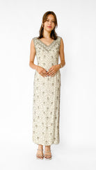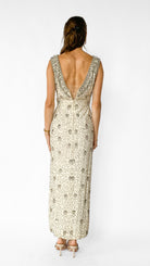 1960s Ivory Beaded V-Neck Gown, sz. S-M