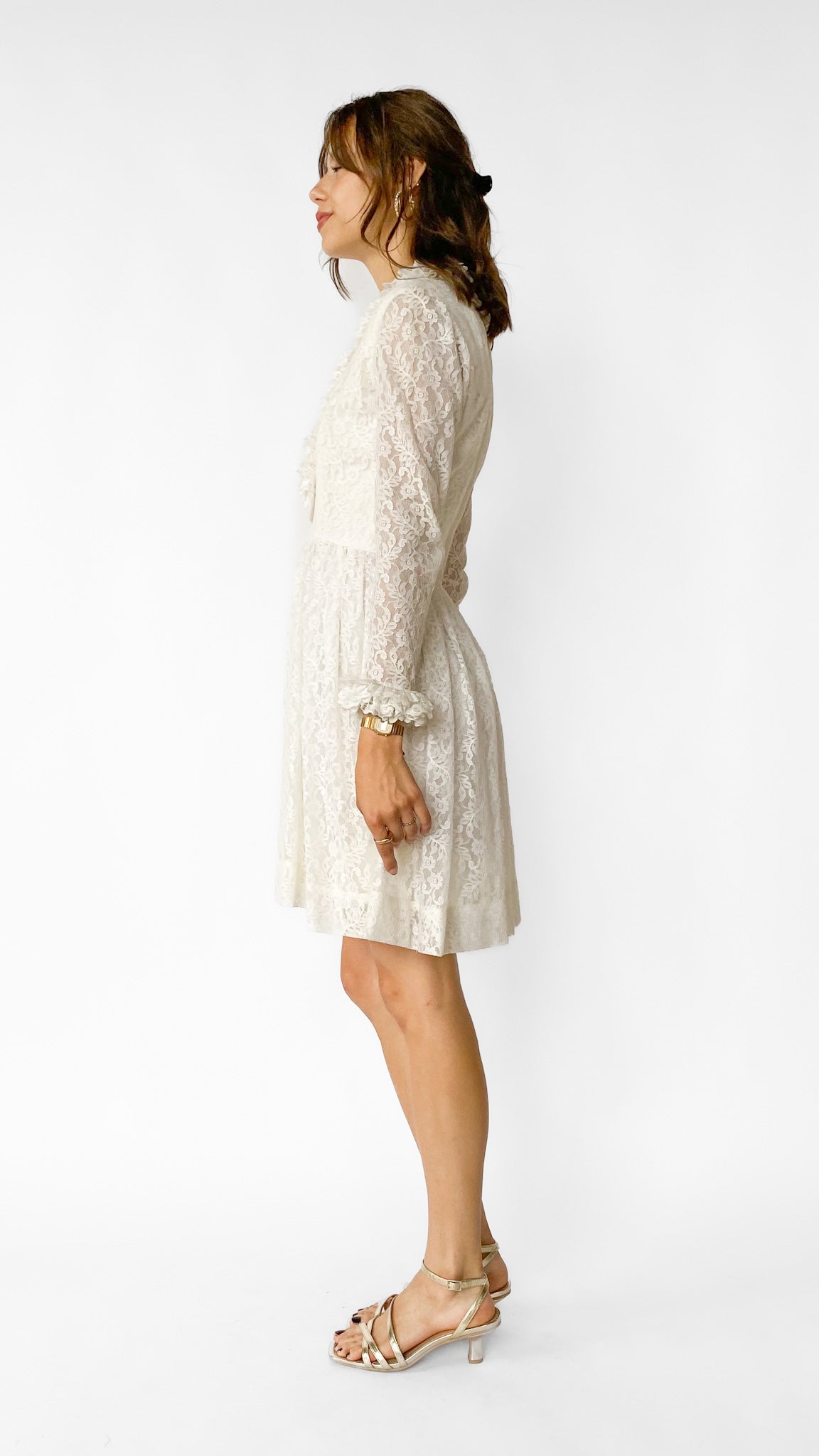 1960s White Lace Long Sleeve Mini Dress, sz. S