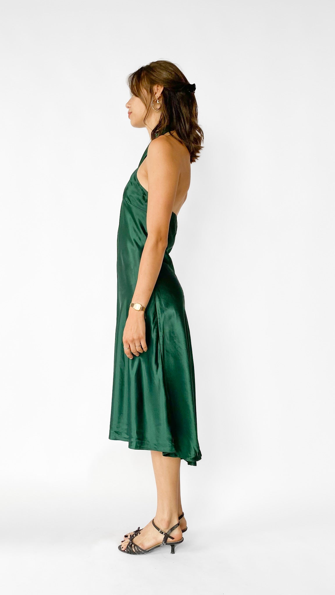 Y2K Emerald Bias Cut Halter Dress, sz. XS-S