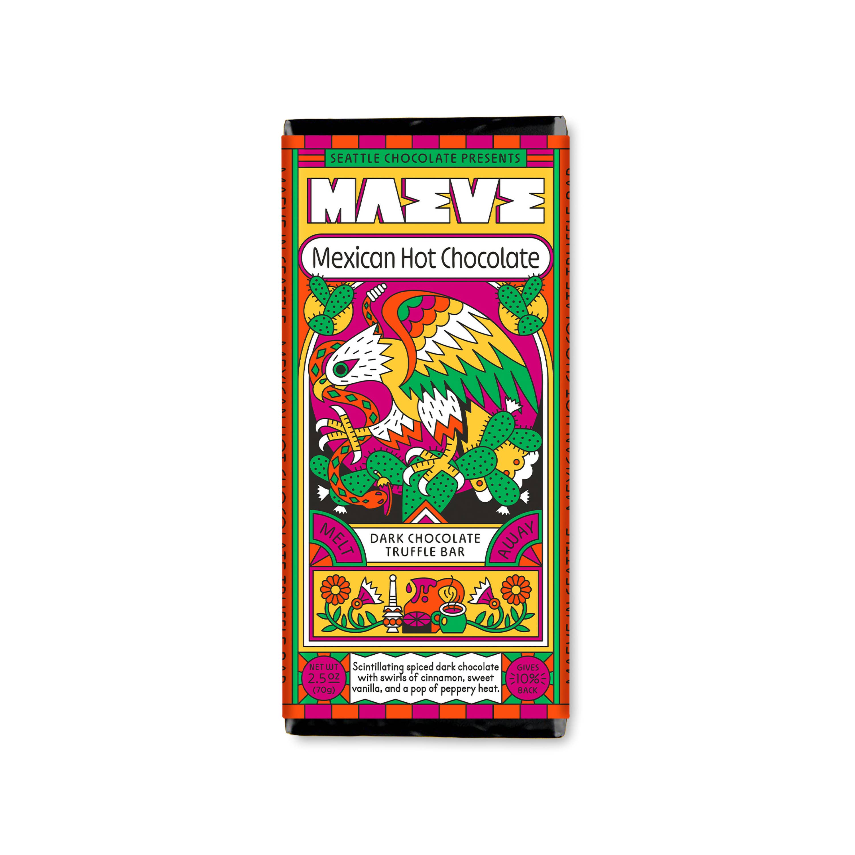 Scintillating spiced dark chocolate with swirls of cinnamon, sweet vanilla, and a pop of peppery heat. Made with organic chocolate. (2.5oz) There’s hot chocolate…and then there’s MEXICAN Hot Chocolate. With sun-kissed spices and just a hint of heat, this is a whole new way to hot chocolate. Maeve’s take on Mexican Hot Chocolate includes fresh-ground cinnamon, pure vanilla extract from Madagascar, and a pinch of cayenne pepper adding depth to this dark chocolate dream. Smooth, spicy, and slightly addicting — this is hot chocolate on a Baja vacation.