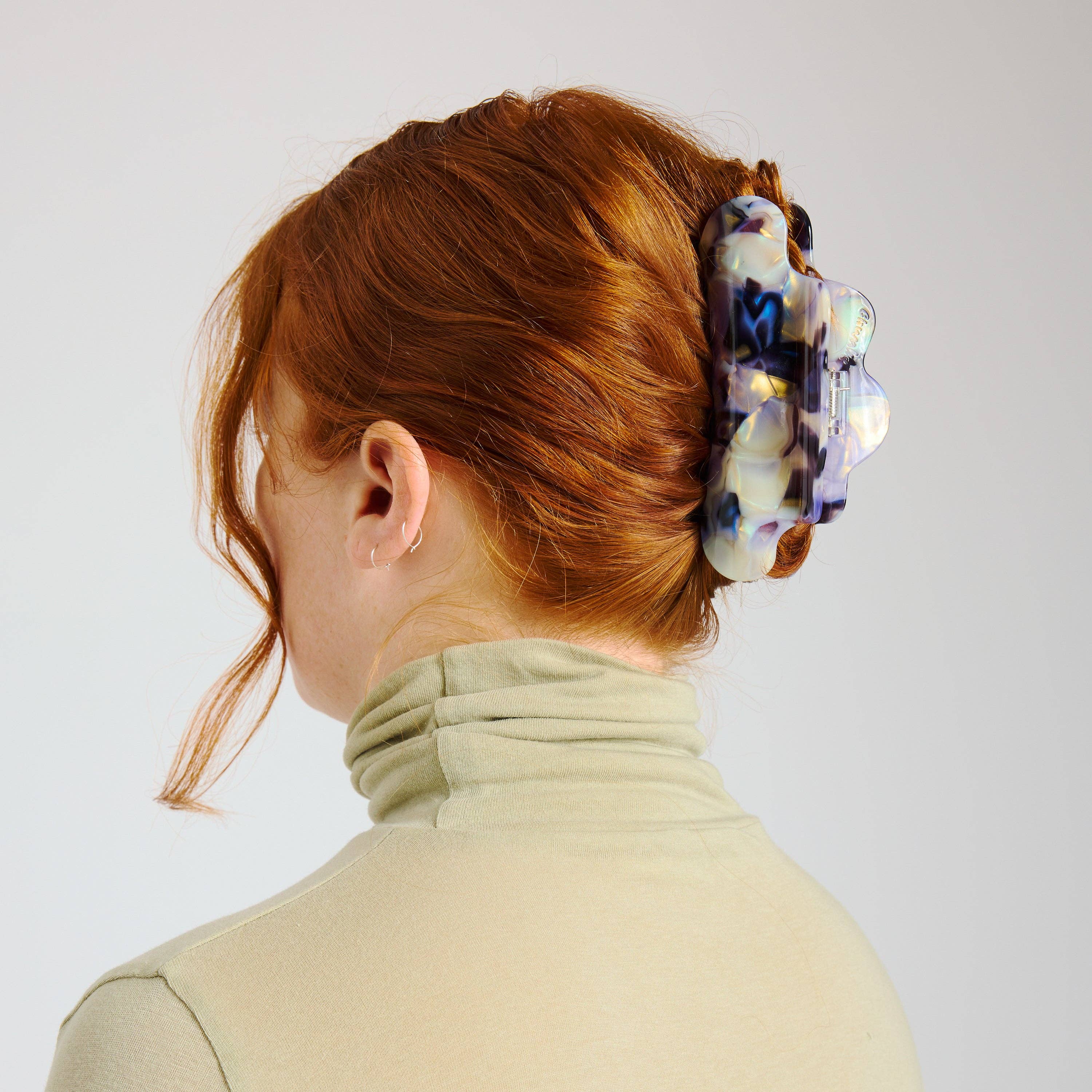 This large hair claw works like a dream on all hair types and textures. Perfect for medium to longer hair lengths. Made from high-quality acetate; a durable, plant-based bio-plastic. Metal hardware is lead and nickel-free. Slight variations will appear with pattern, color, and form due to the handmade nature of the product.