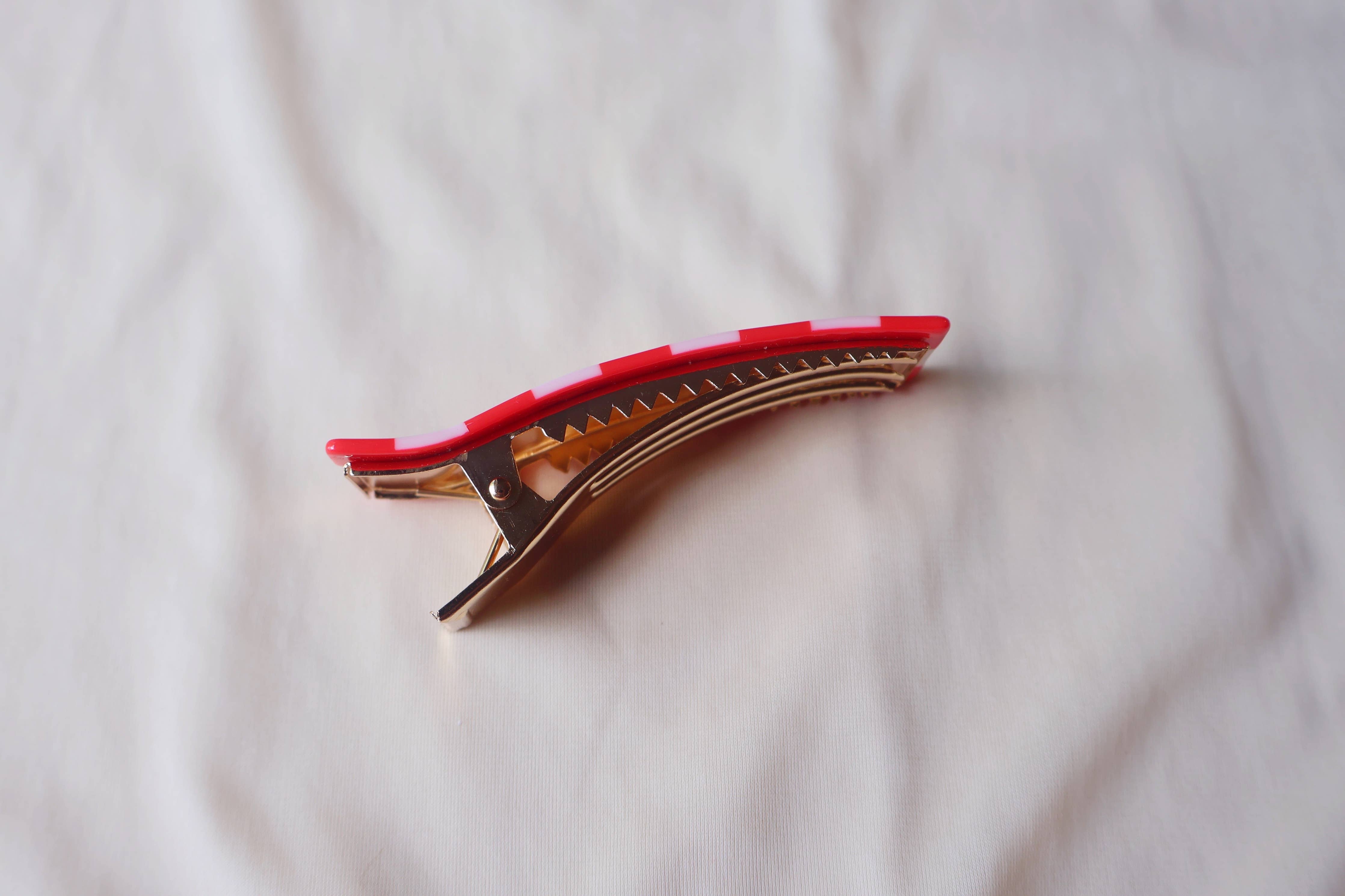 A summer classic. The Gingham XL Alligator Clip is a super sturdy hair accessory made for average to thick hair types. This heavy duty clip isn’t messing around—the XL Alligator Clip will keep your locks up poolside or picnicking all year long. Available in red gingham and brown gingham.