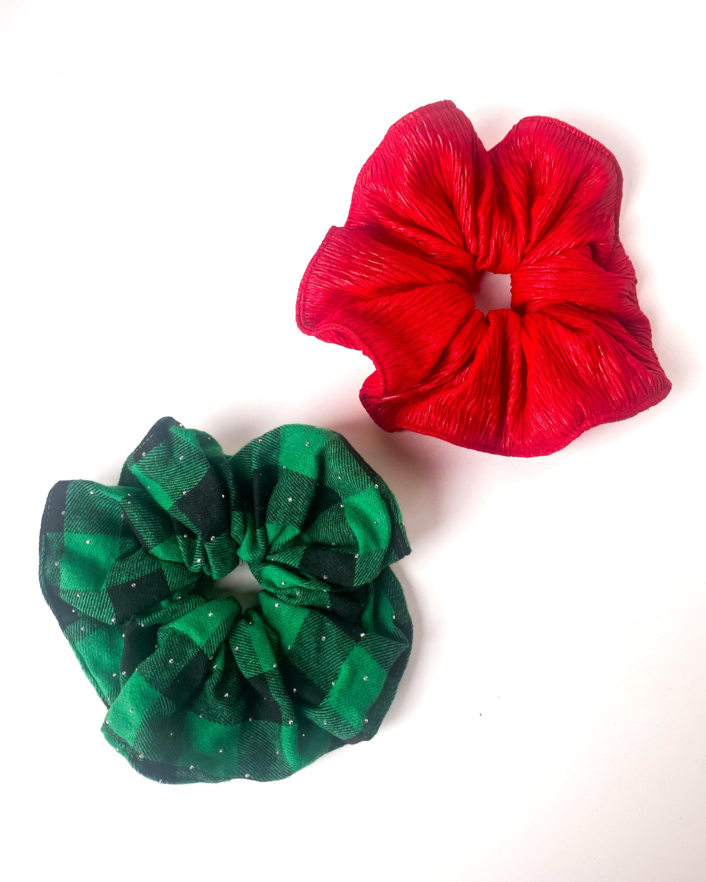 Jumbo Green and Red Holiday Scrunchies (Set of 2)
