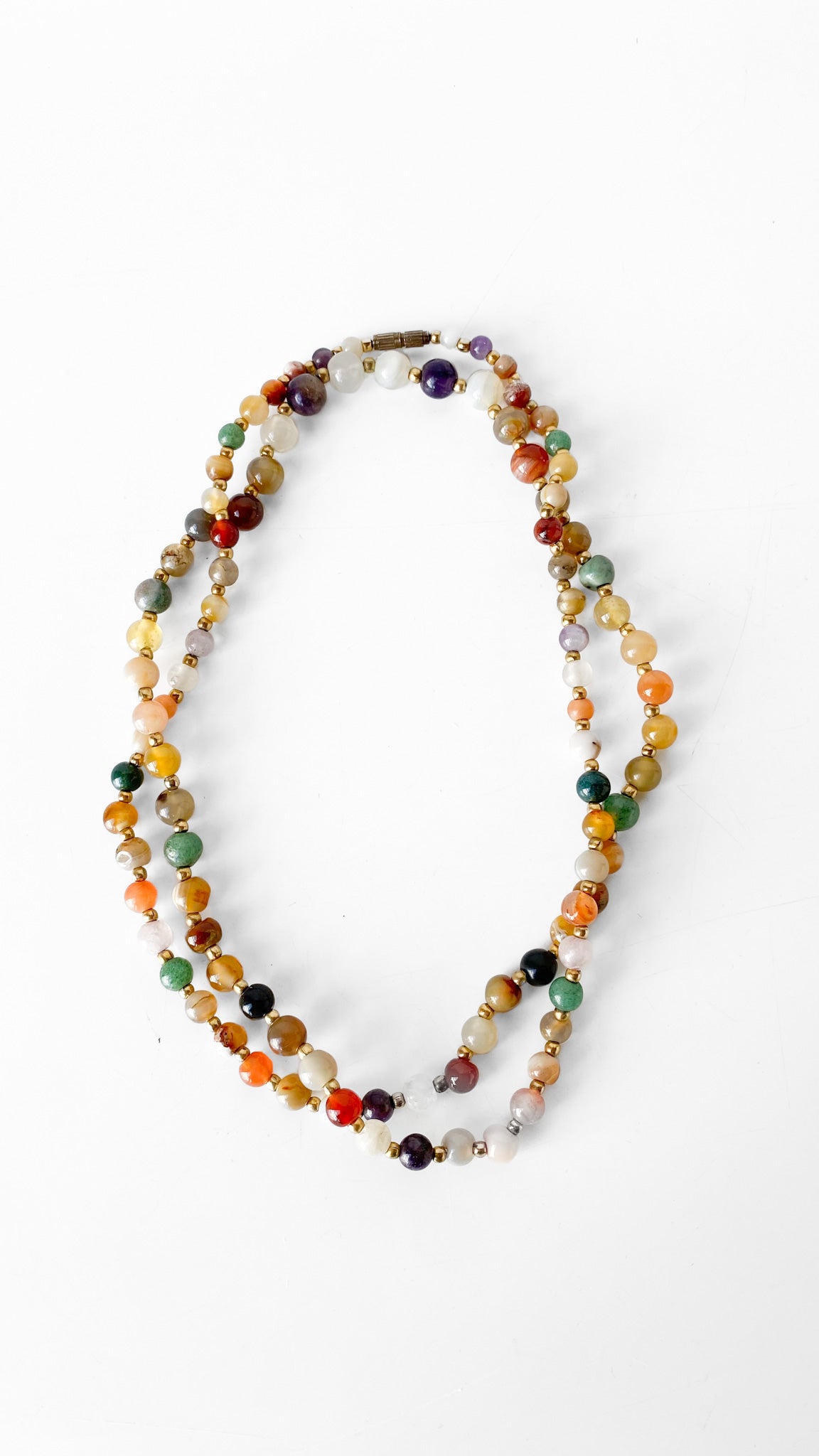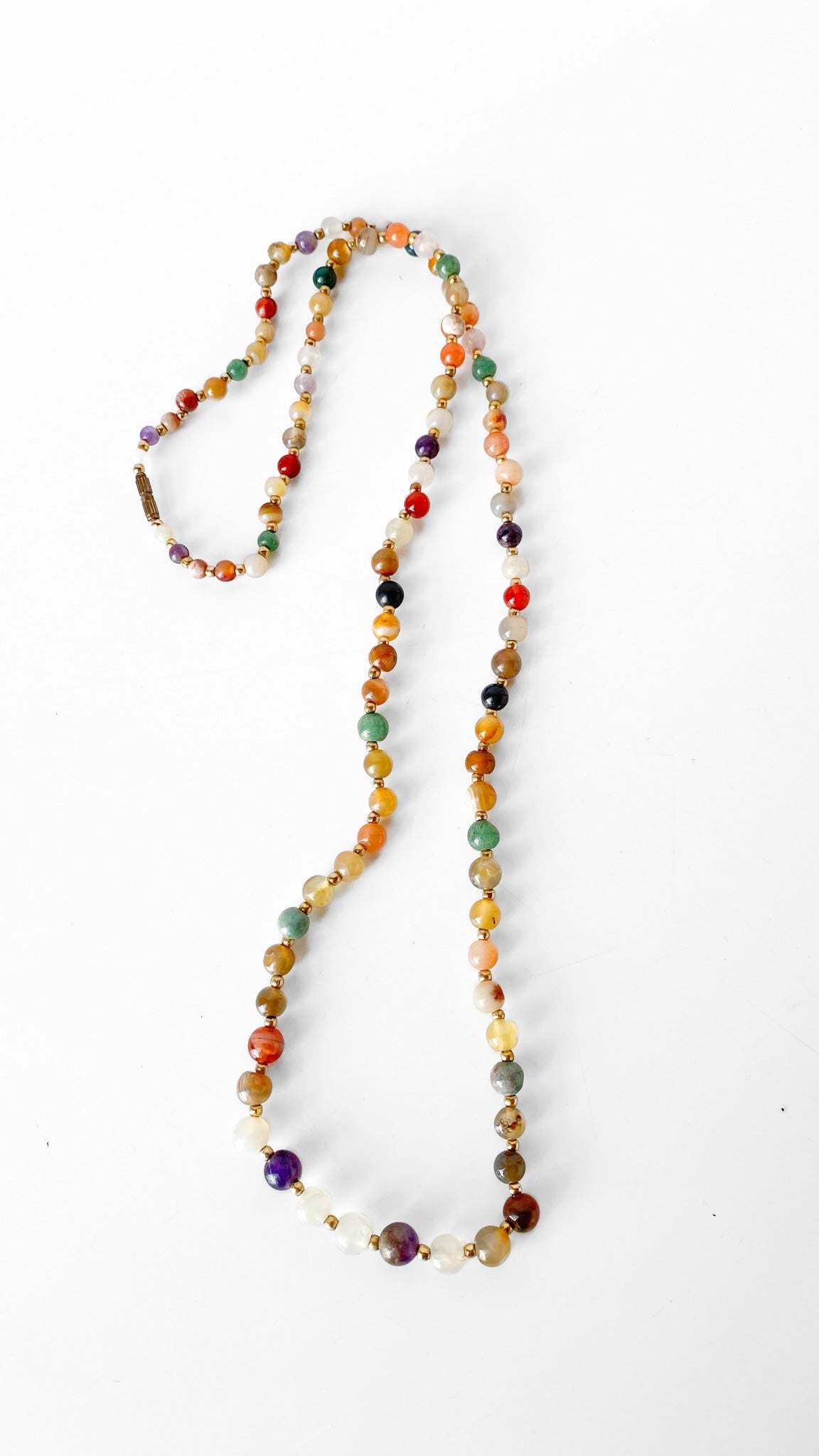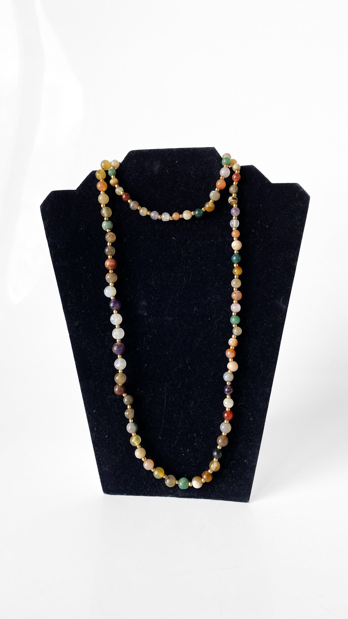 Vintage natural stone bead necklace with alternating small gold beads, twist clasp.