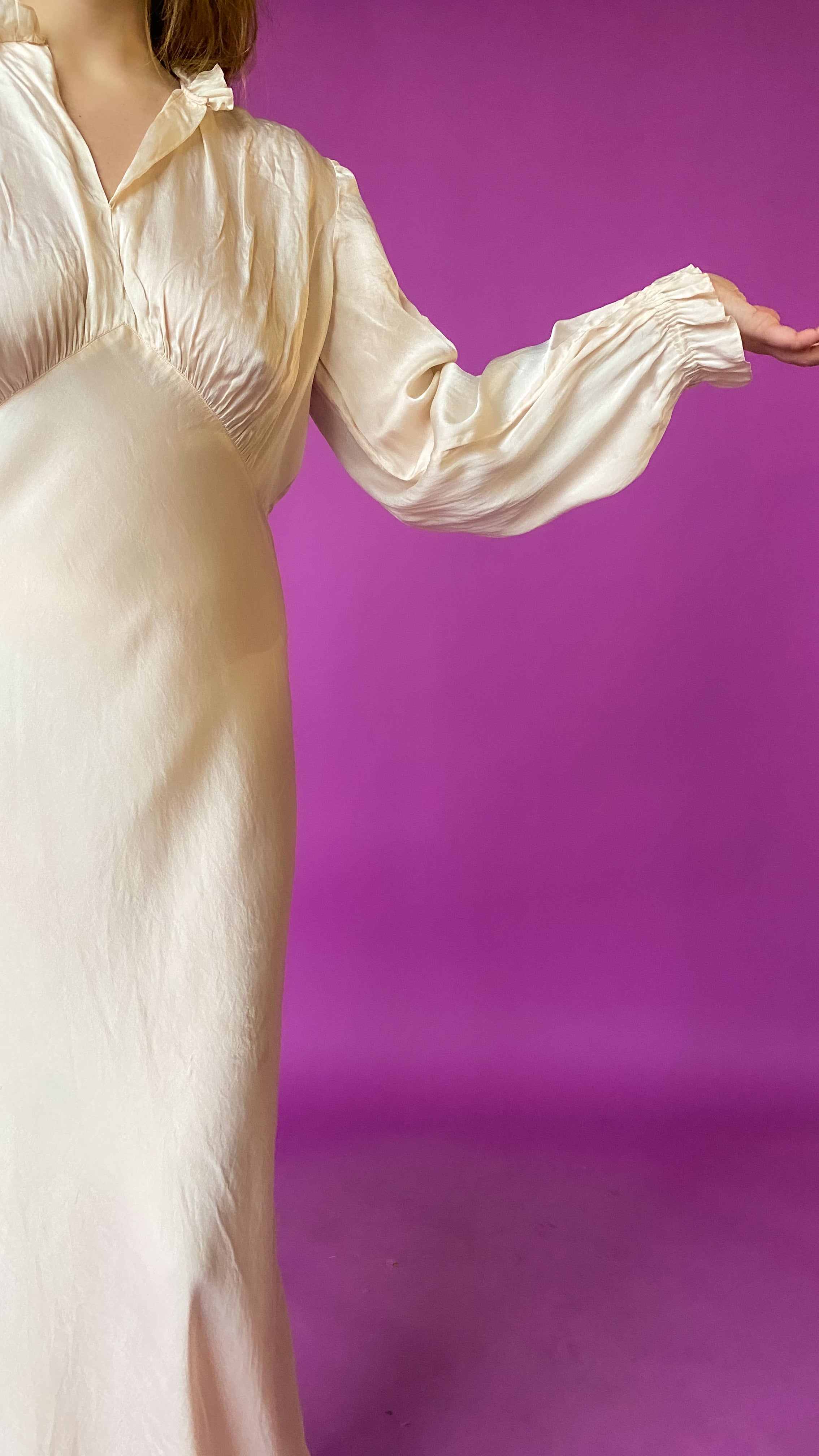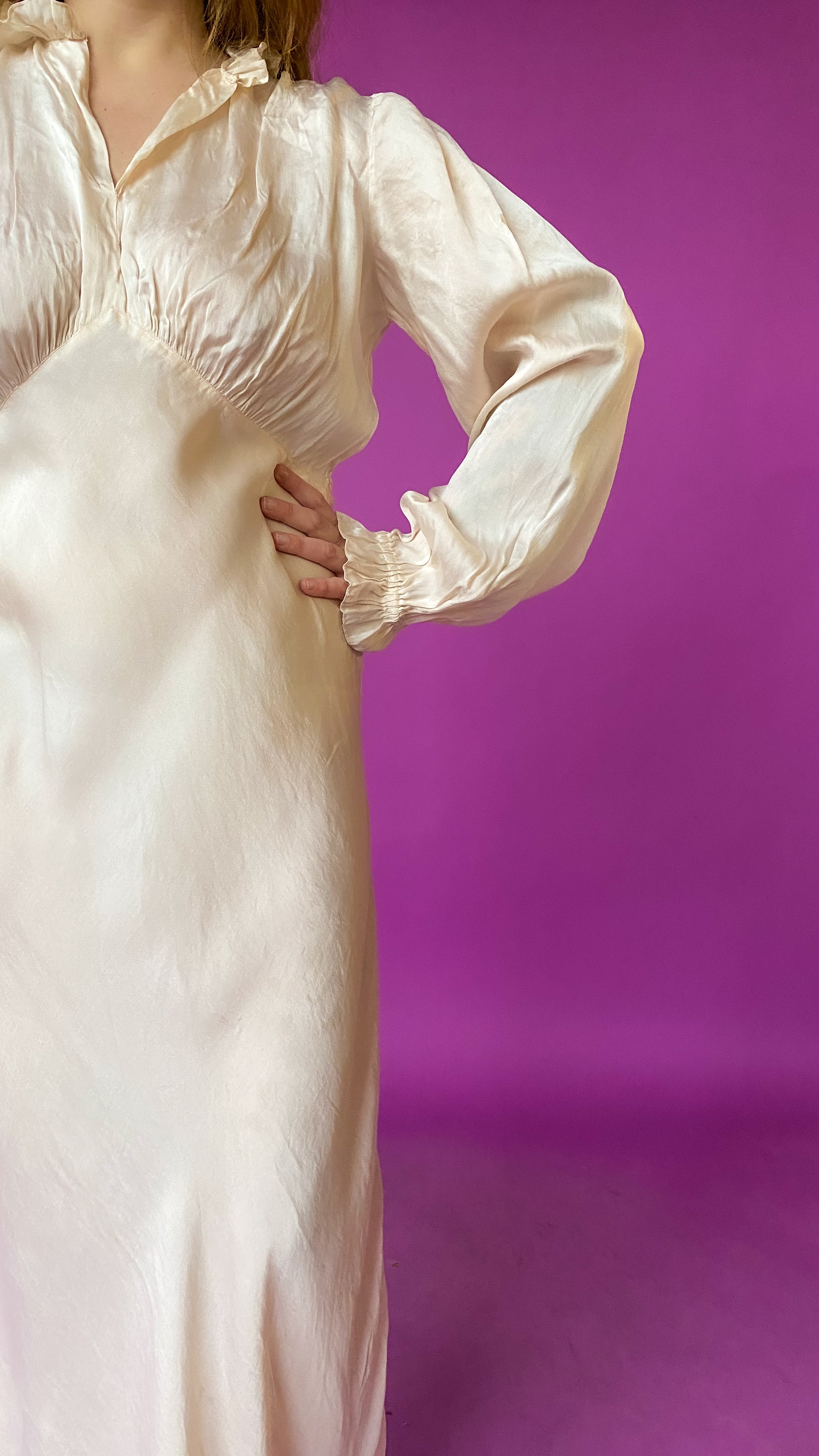 1930s Ivory Empire Waist Gown, sz. M