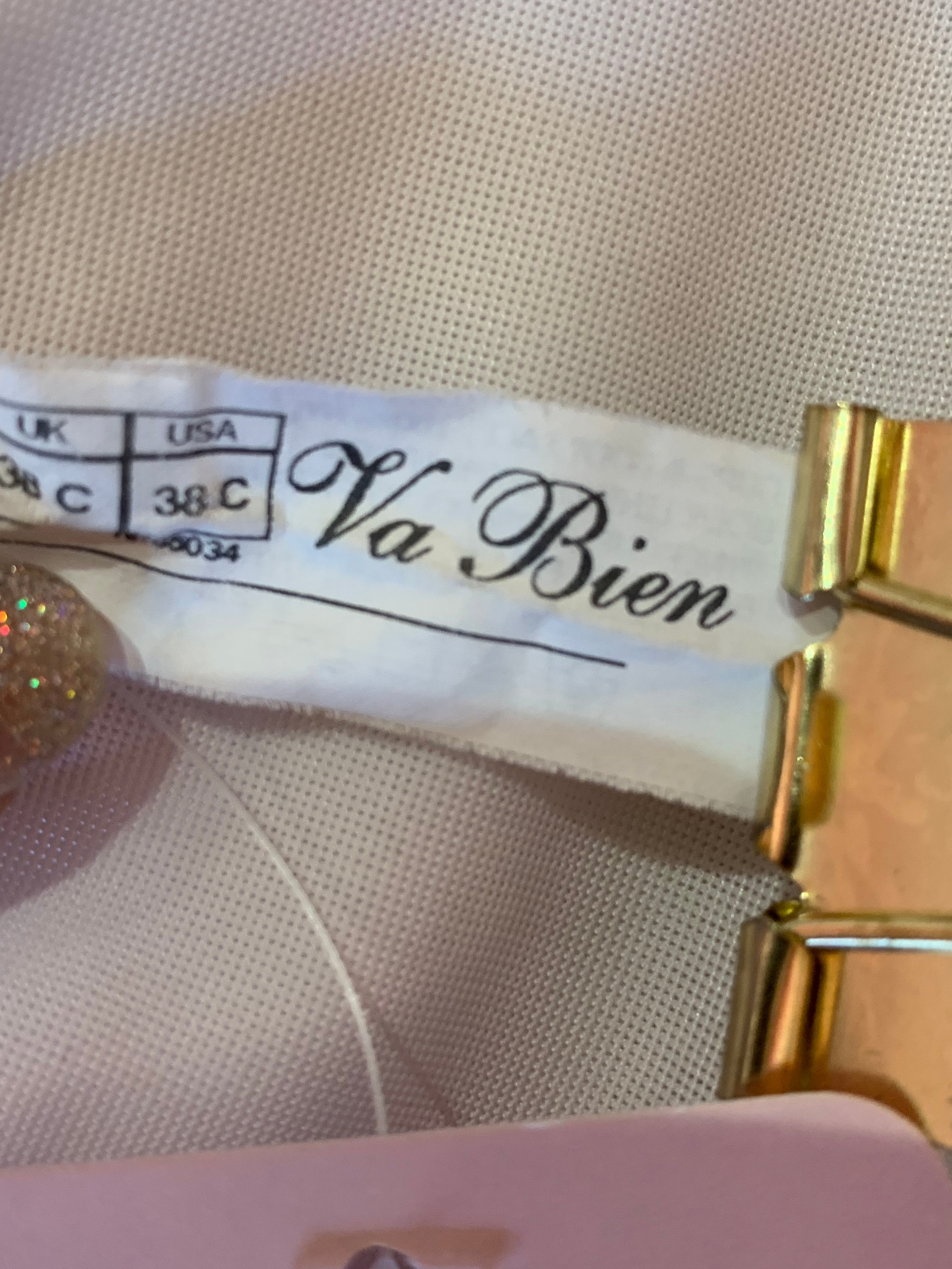 Floral lace strapless plunge bustier with sheer bodice and v line back. Padded cups, underwire, and boning to give structure. Center bow detail. Adjustable hook and eye closures on center back. Has inner loops to add straps.