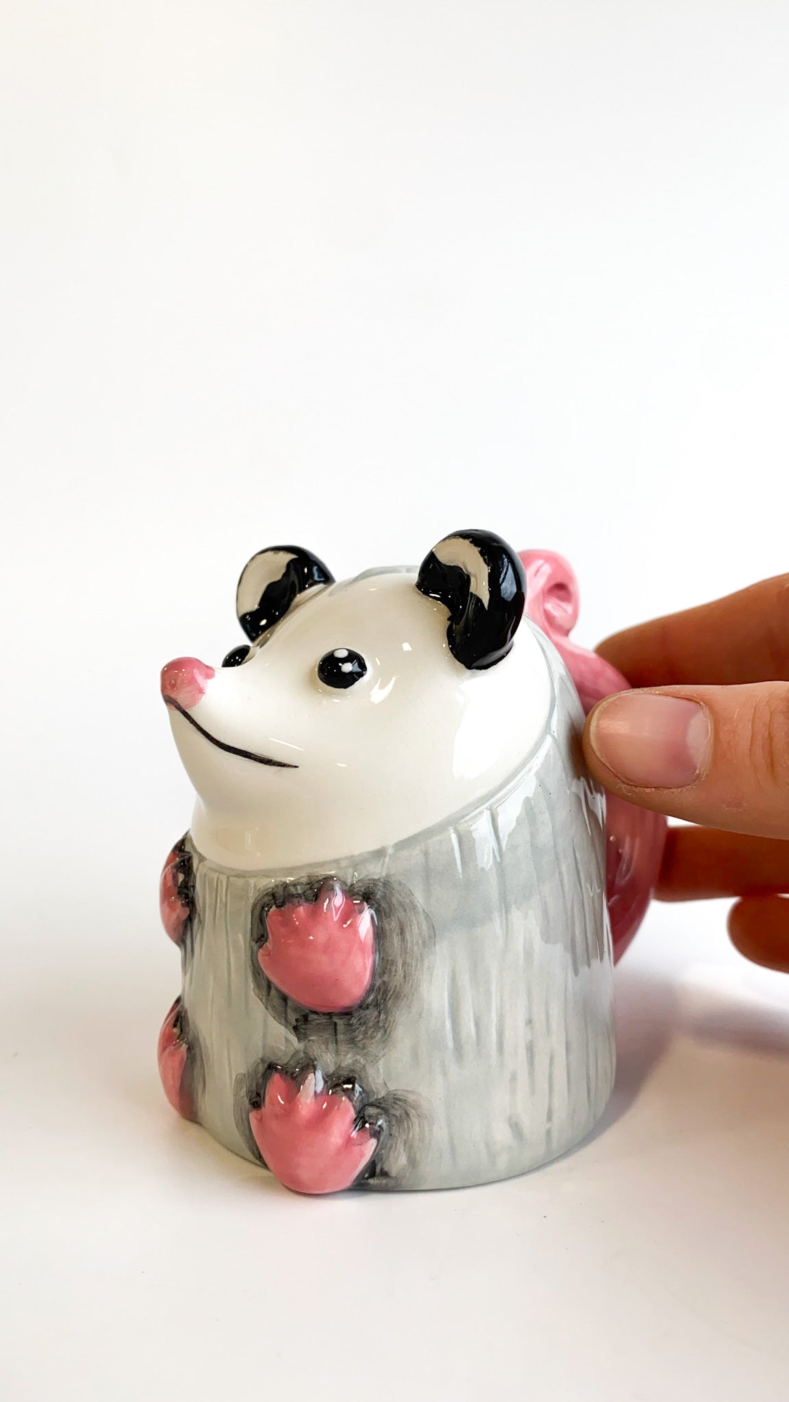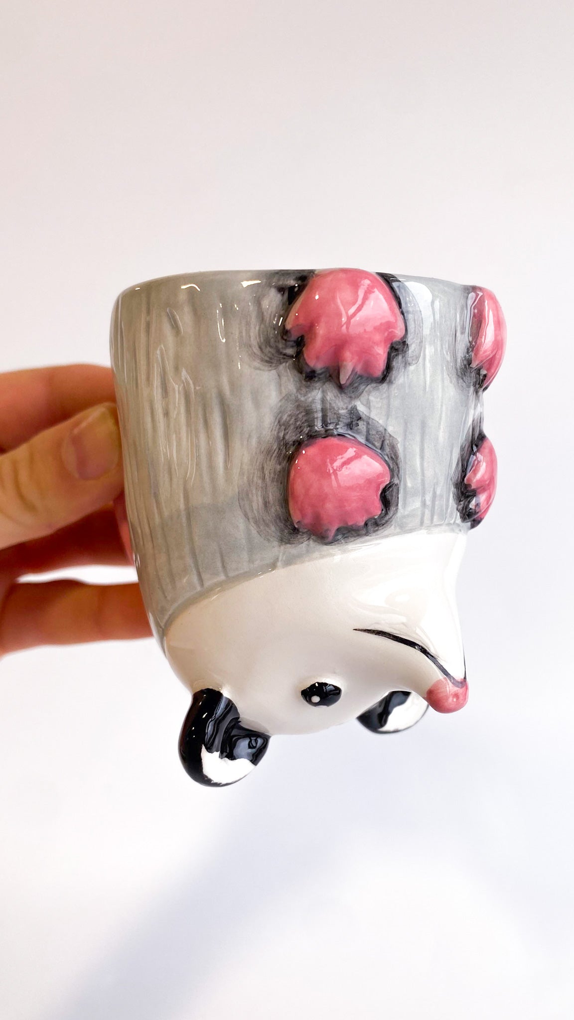 The best-selling mug has a baby... introducing the Upside-Down Opossum Mini Mug! This dainty chalice is the perfect size for a morning espresso or a cheeky shot of your favorite evening spirit. A must-have for customers seeking the perfect gift or a lovable pick-me-up for themselves! 2oz capacity Double-walled (smooth inside, insulated to keep drinks hot or cold).