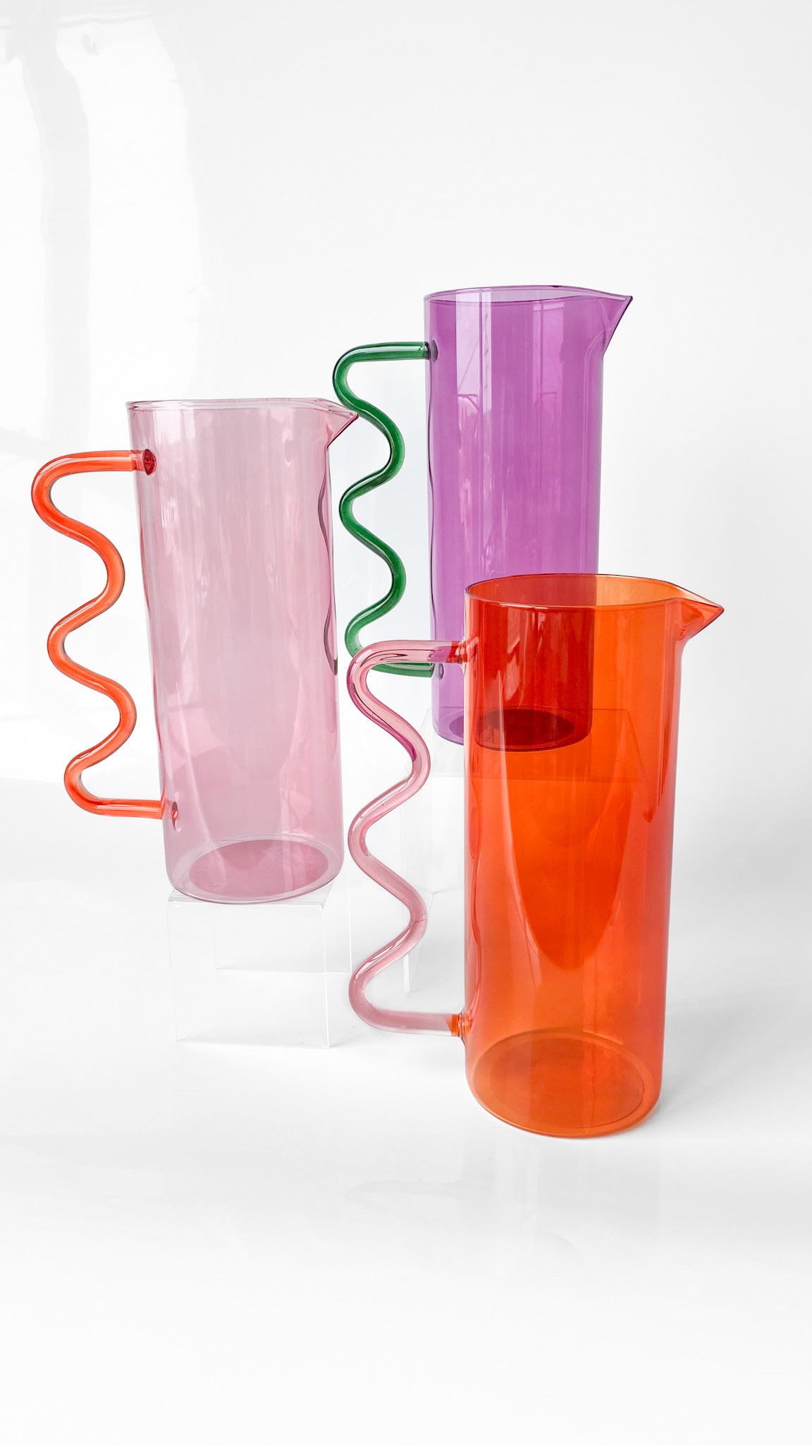 A perfect blend of functionality and style, designed to bring color and fun to your kitchen table, this pitcher is more than just a drinkware item. With its unique squiggle design, this pitcher is sure to add a splash of excitement to your home living experience.