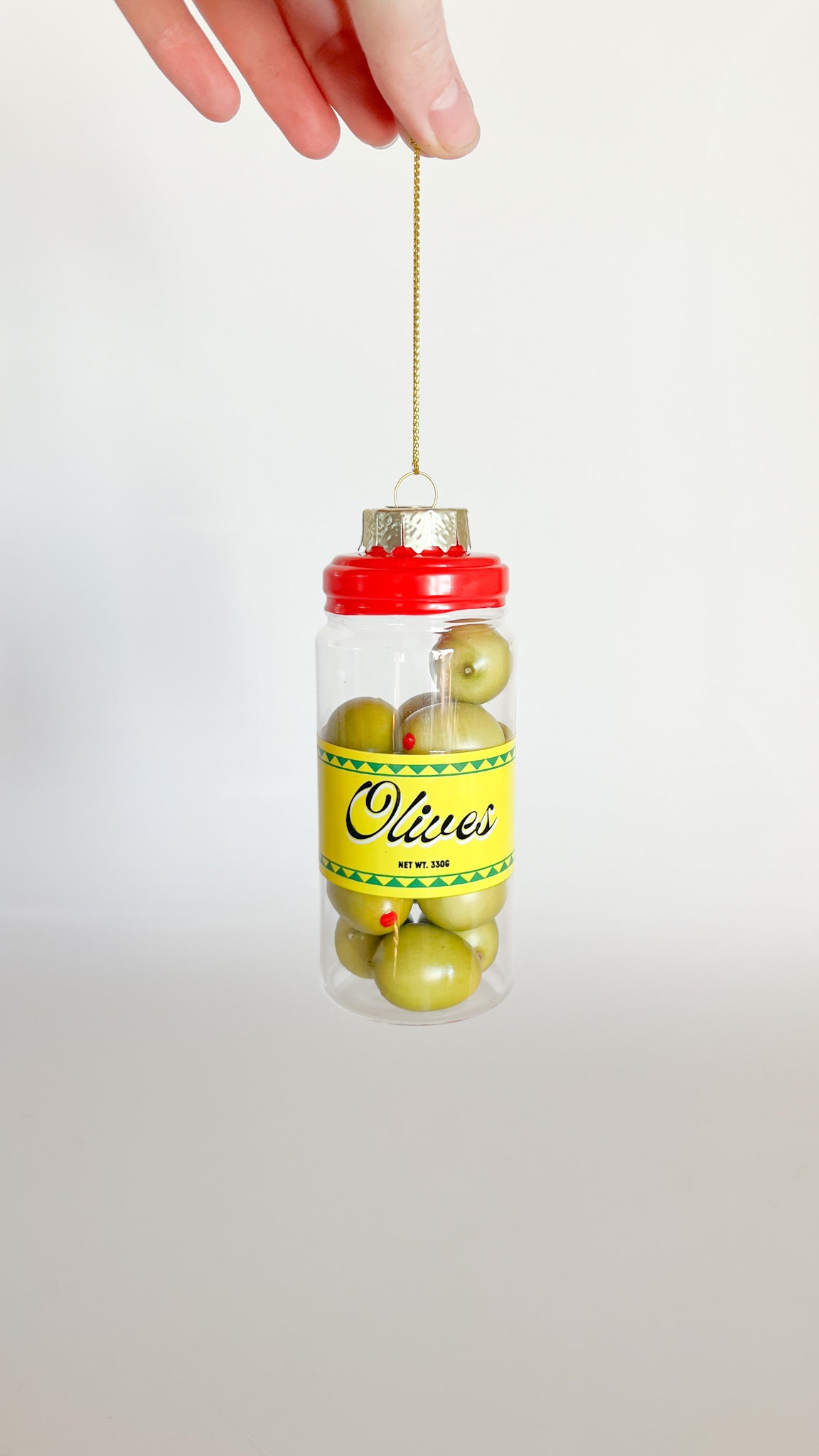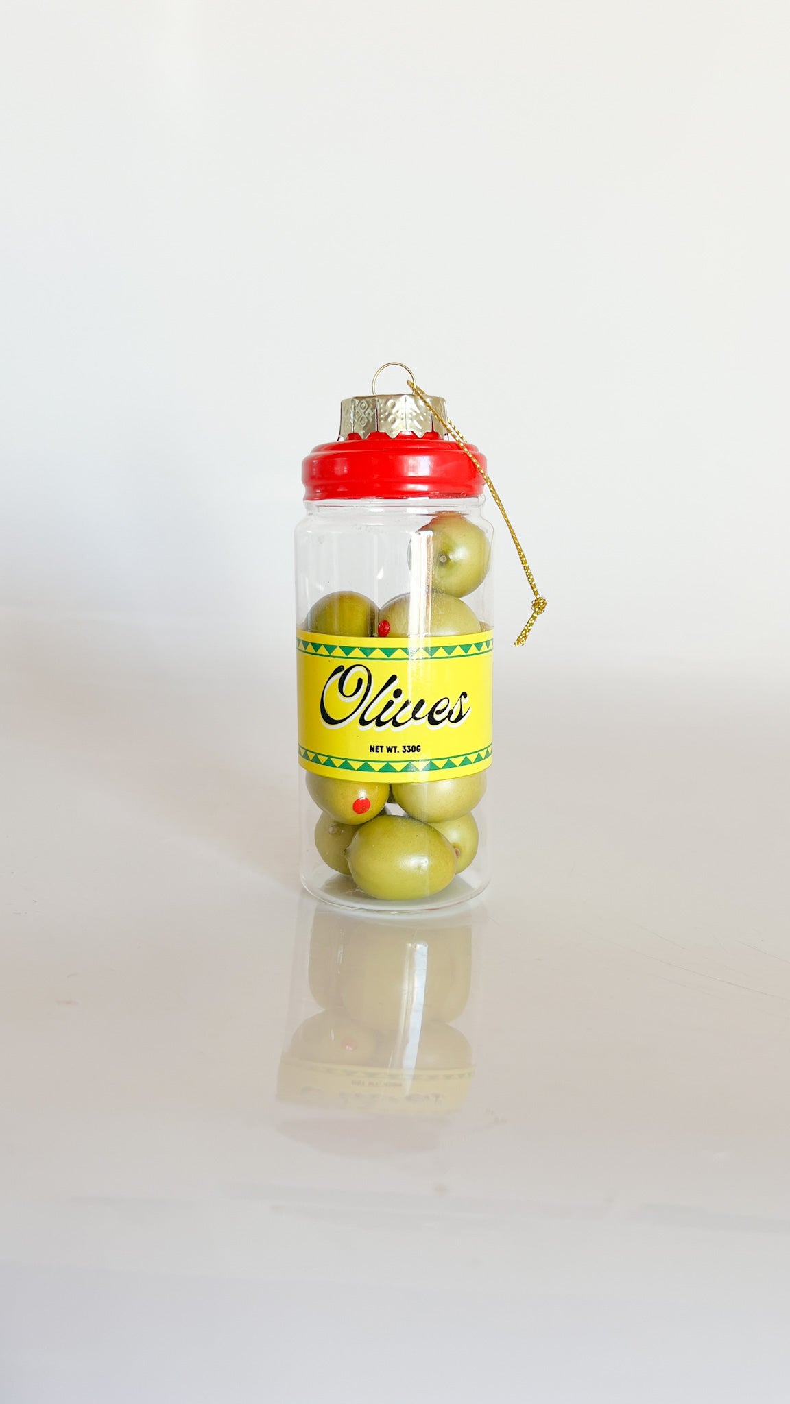 No cocktail enthusiast's Christmas tree is complete without this hand-blown glass jar of olives. With a hand-painted jar and life-like olives, this ornament looks like the real deal! The perfect gift for yourself or your favorite Martini lover! Comes packaged in a custom-made box printed with a retro holiday design that’s just too good to hide with wrapping paper.