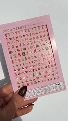 1950s holiday nostalgia at its cutest—retro sweets, shiny decor, and kitschy Christmas charm. Bring on the Jell-O molds. 🎄🍒🎅 Nail art just got way easier. These tiny stickers were made to be easy to remove from their sheets and press right onto your nails. They can be applied to gelled, polishes, or natural nails, just make sure that whatever surface you're putting them on is dry. Oh, and don't be a hero; use tweezers to remove stickers from sheets. They are thin, so take your time and be gentle. Application directions and tips are printed on the back of packaging if you need additional guidance. For best results, use a thick top coat to seal the sticker on your nail. You may need to put an extra coat overtop of gold metallic stickers.