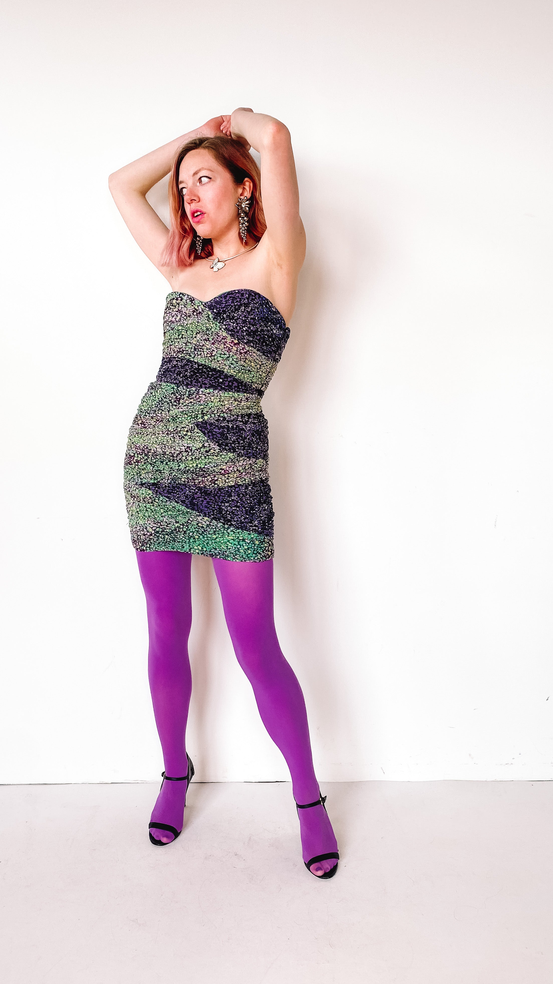 Y2K Strapless Green and Purple Mini Dress, sz. S