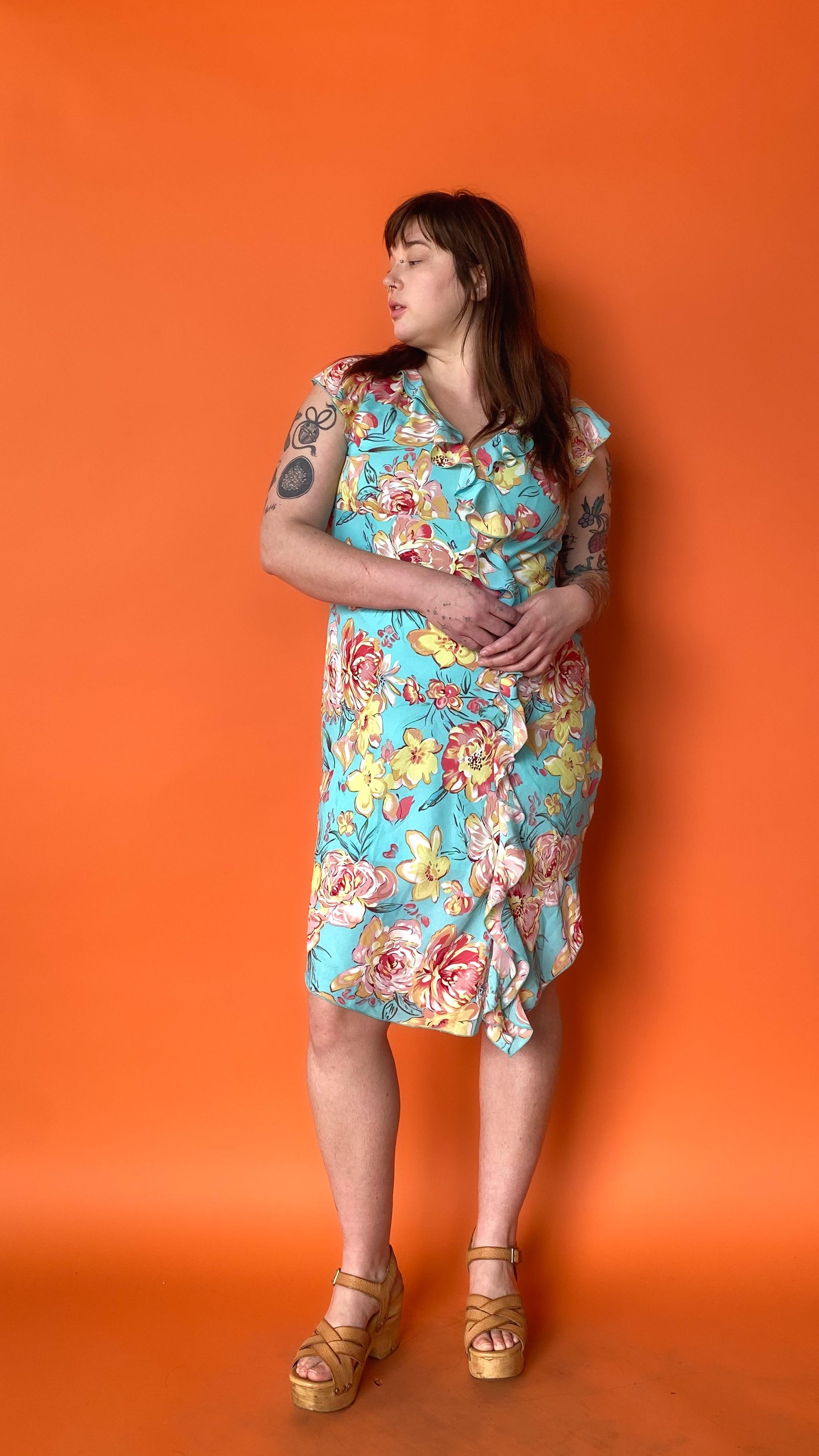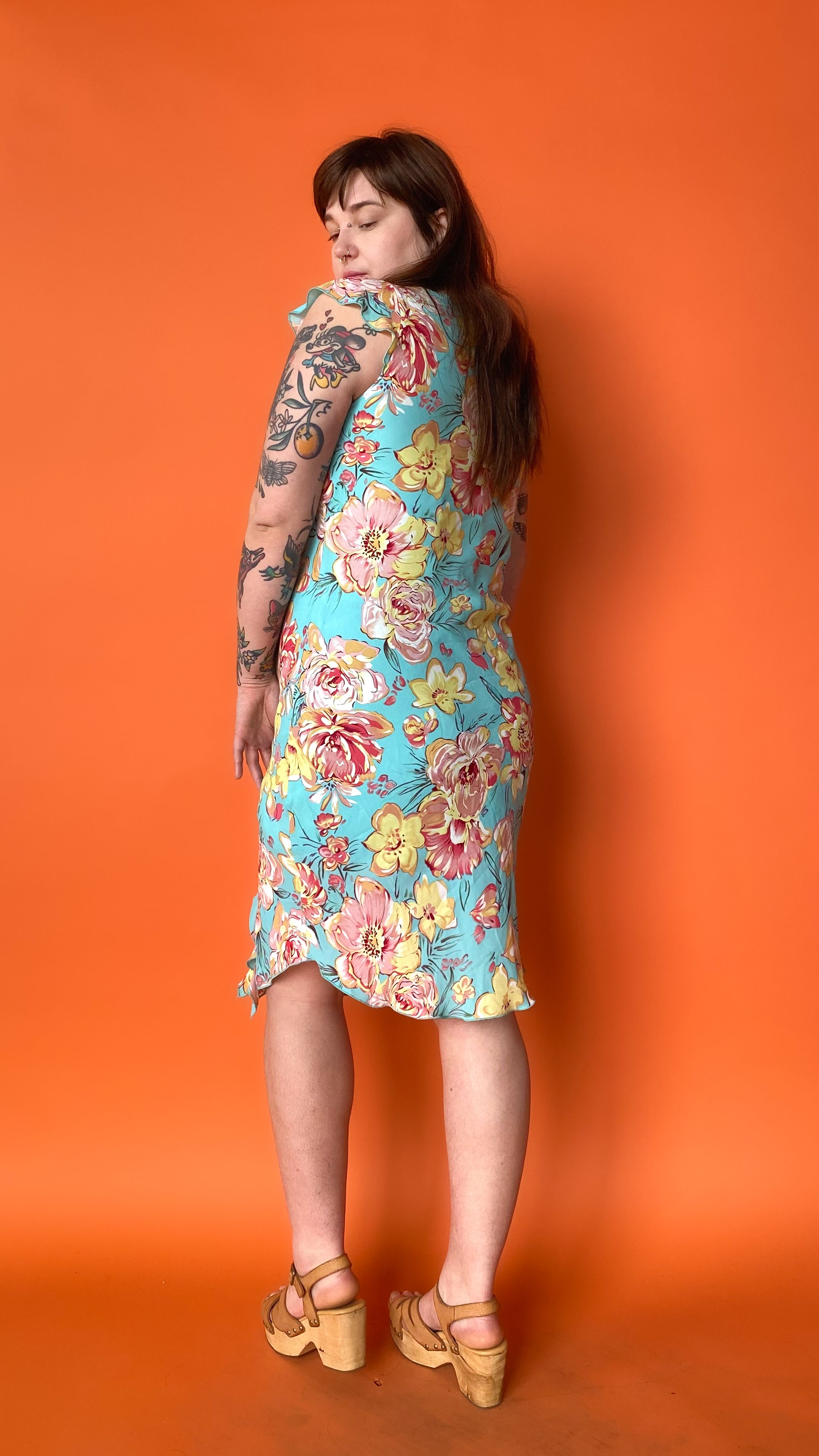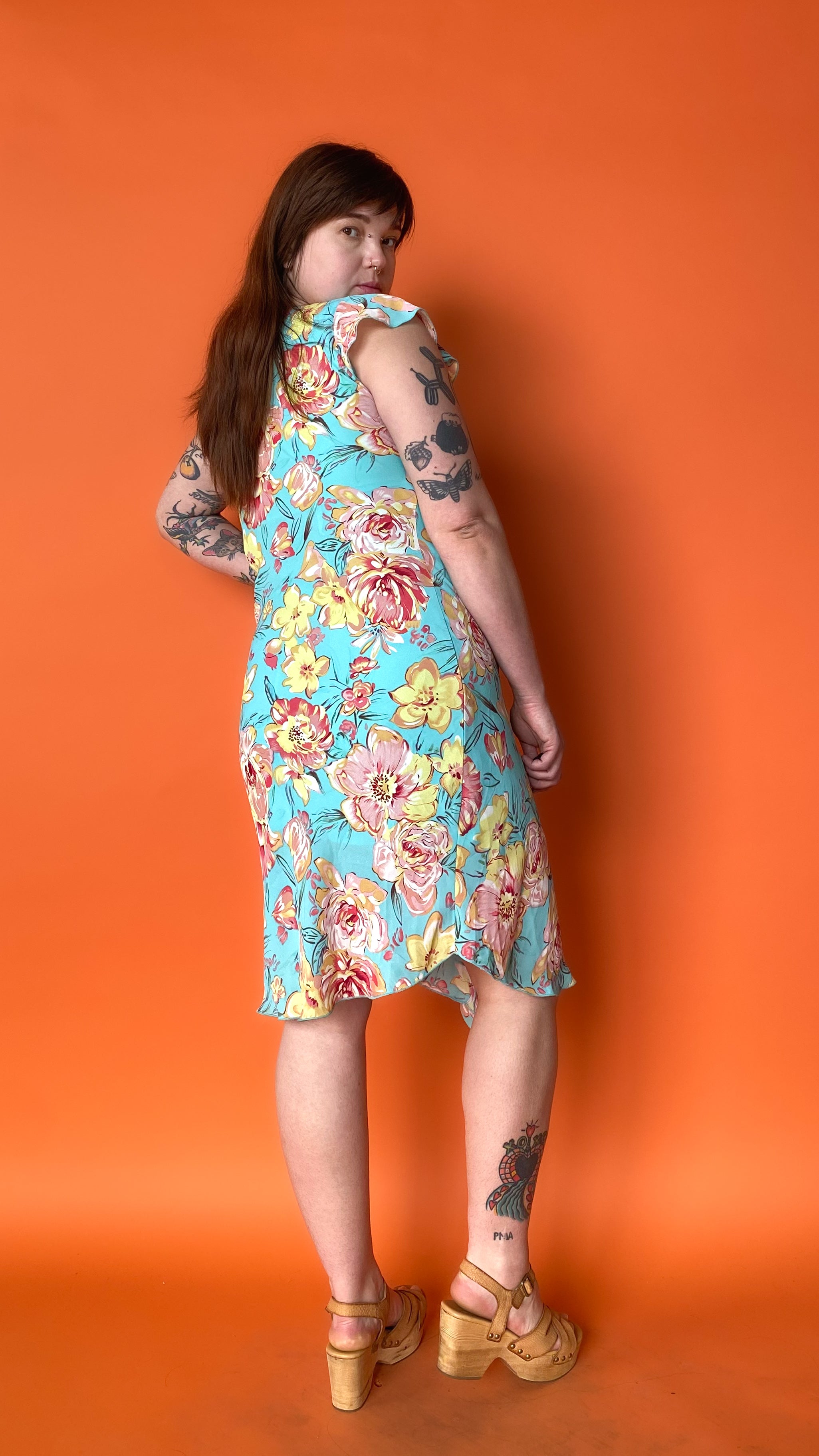 Y2K Sky Blue Floral Dress, sz. L/XL