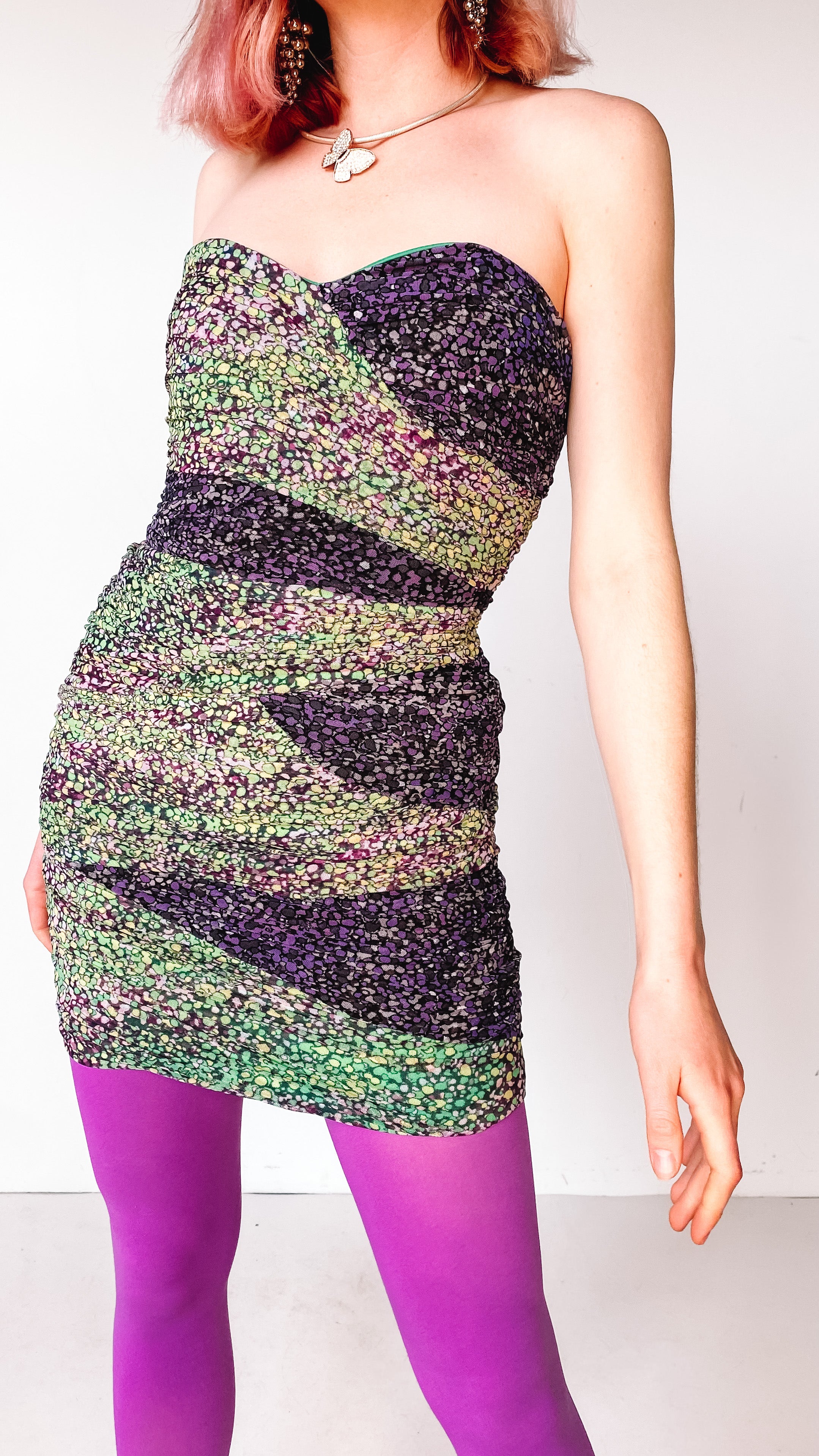 Y2K Strapless Green and Purple Mini Dress, sz. S