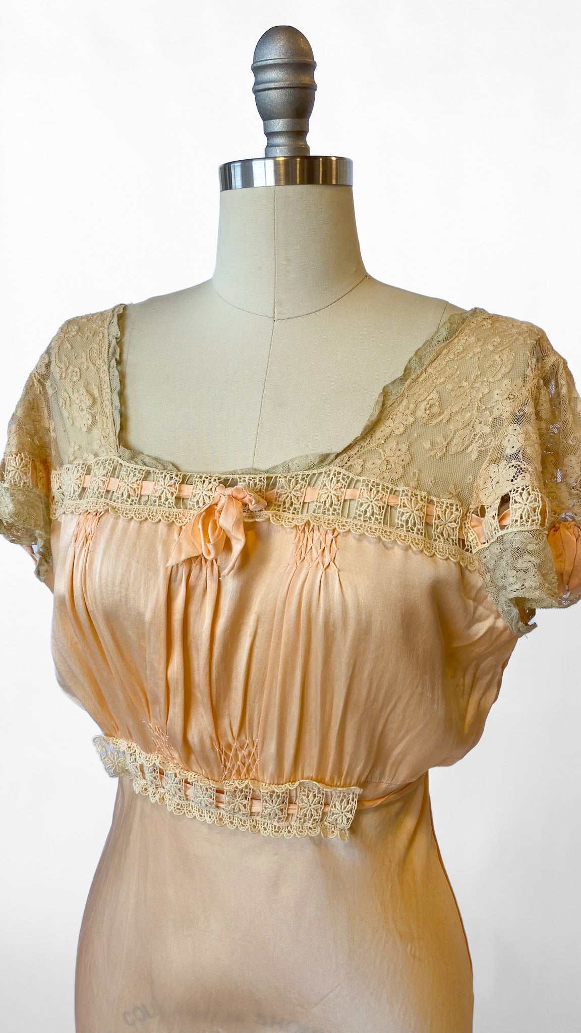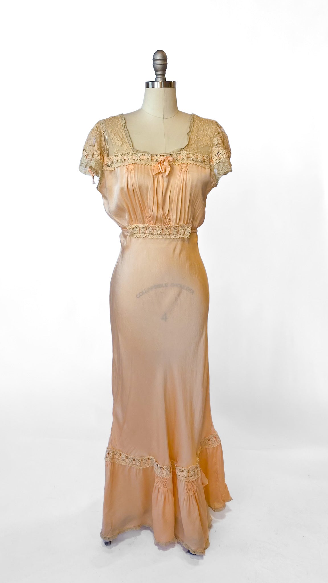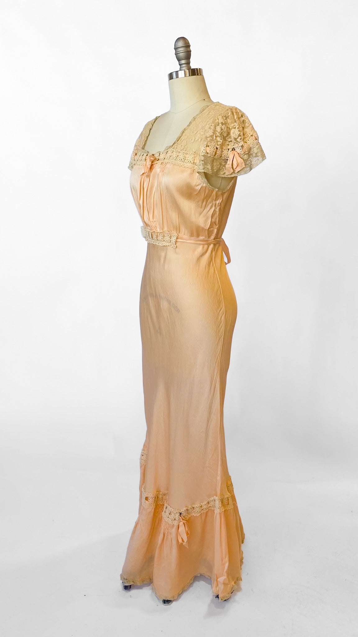 1930s Peach Bias Cut Lace Trim Dress, sz. M