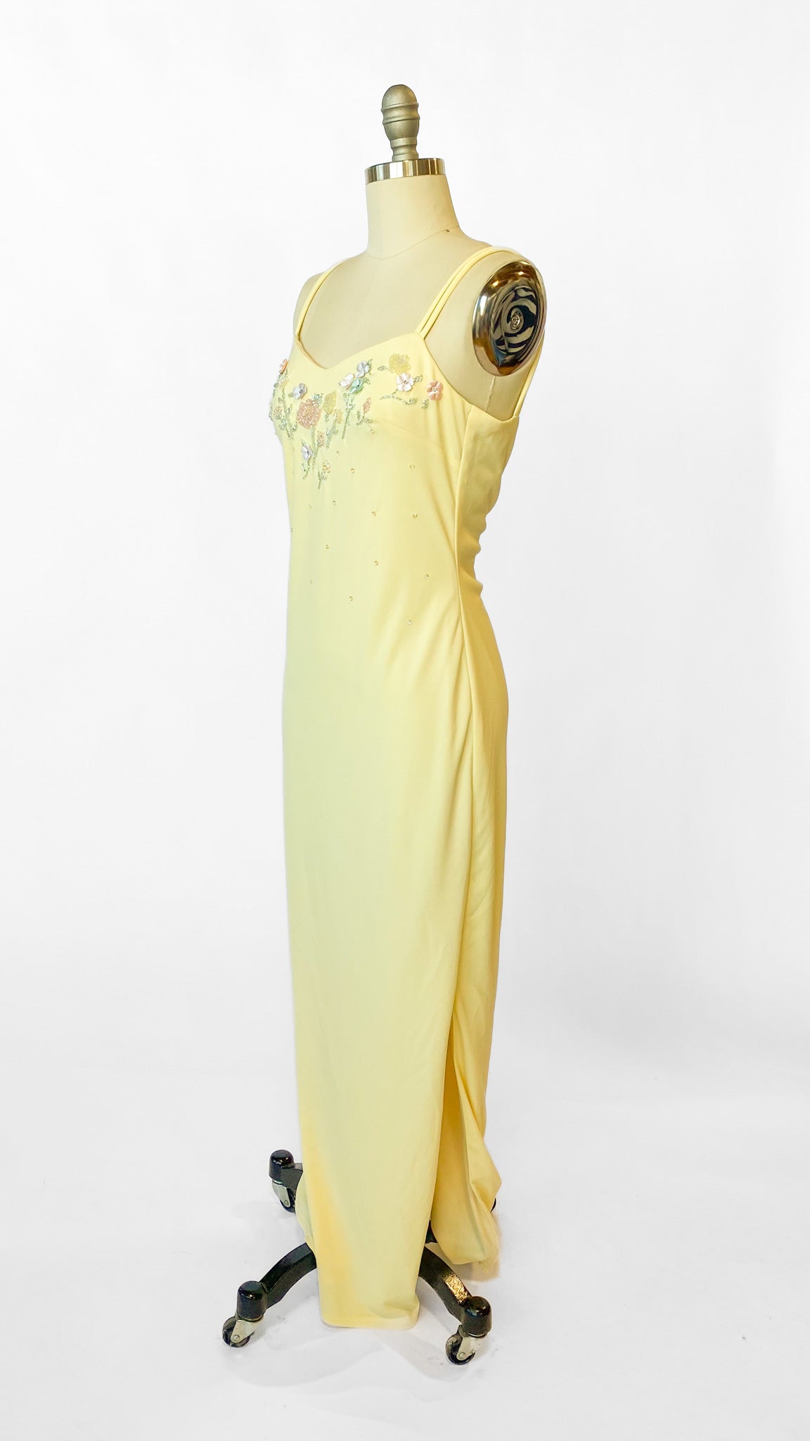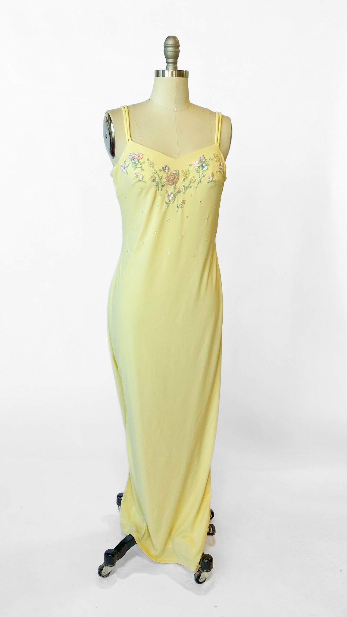 1990s Yellow Floral Beaded Dress, sz. S