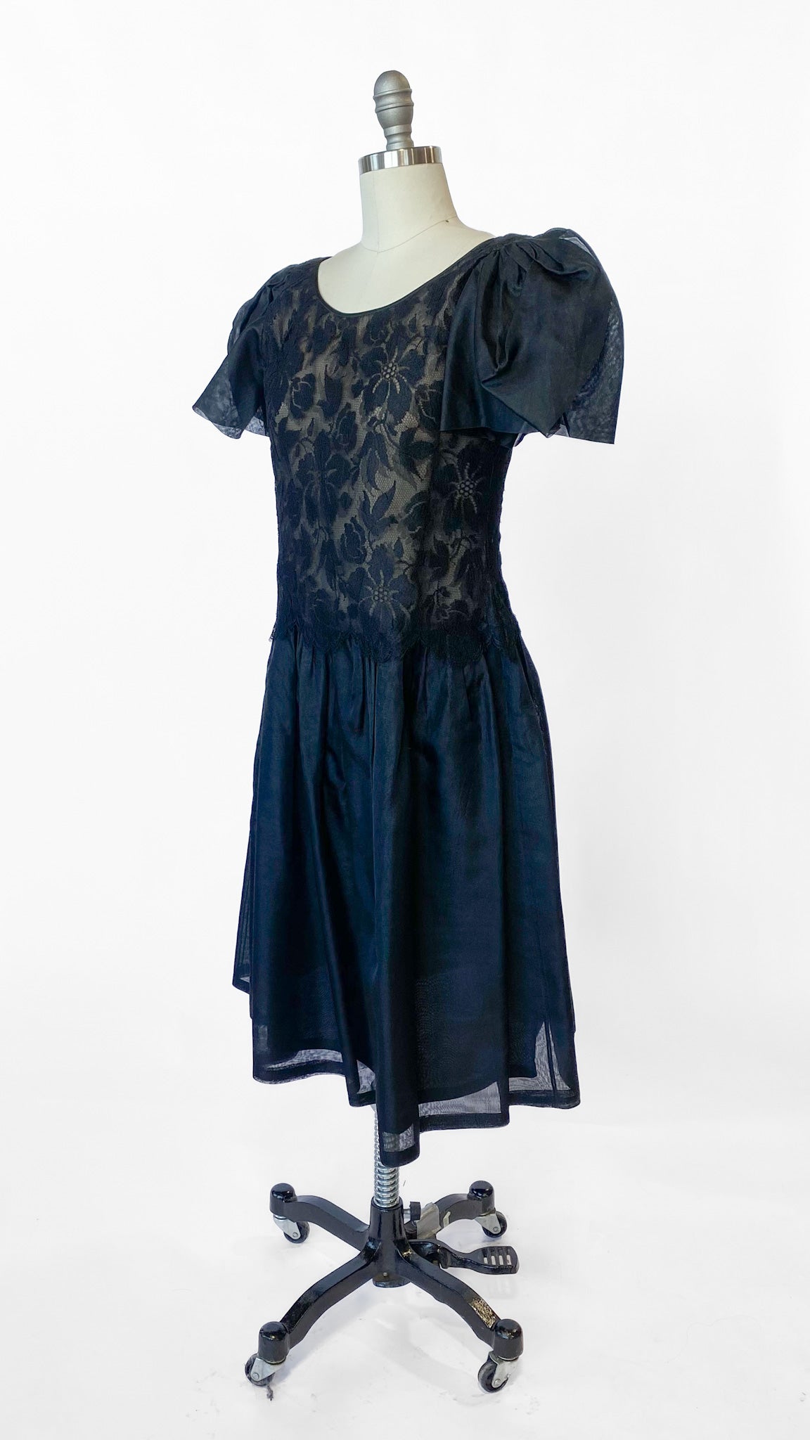 1980s Hanae Mori Black Lace Dress, sz. S