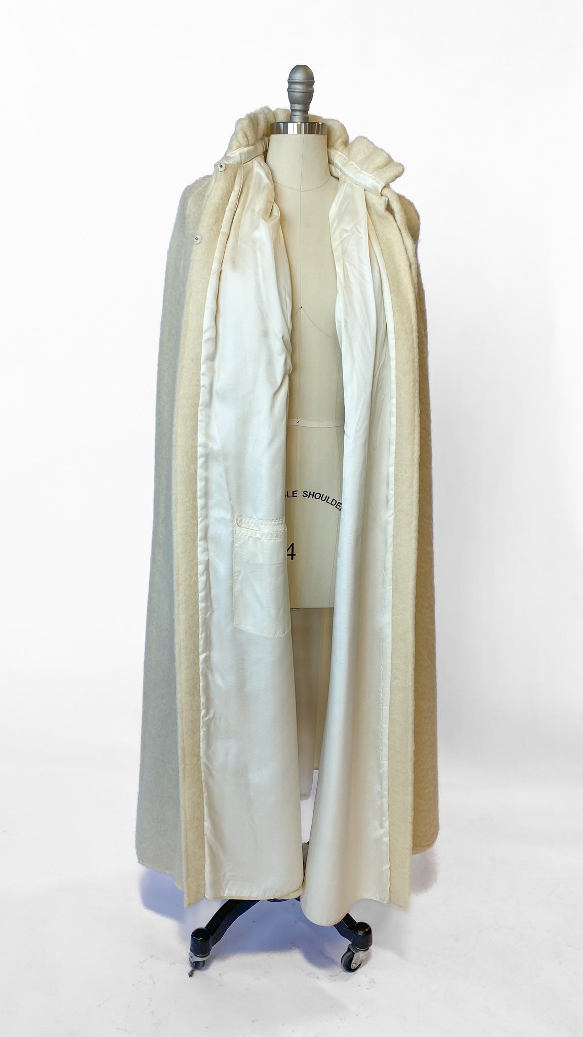 1950s Ivory Wool Cape Jacket, sz. Open