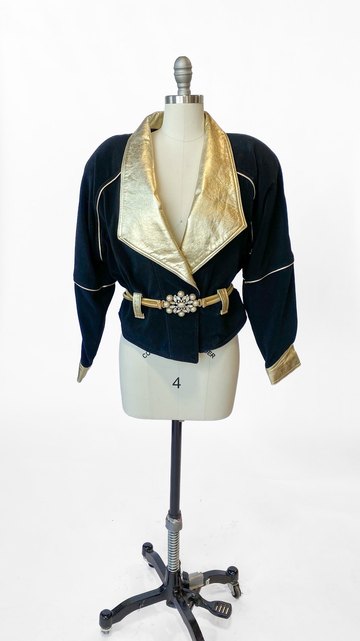 1980s Black + Gold Cropped Jacket, sz. XL