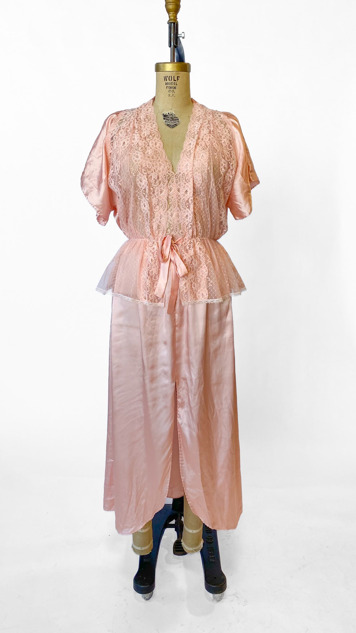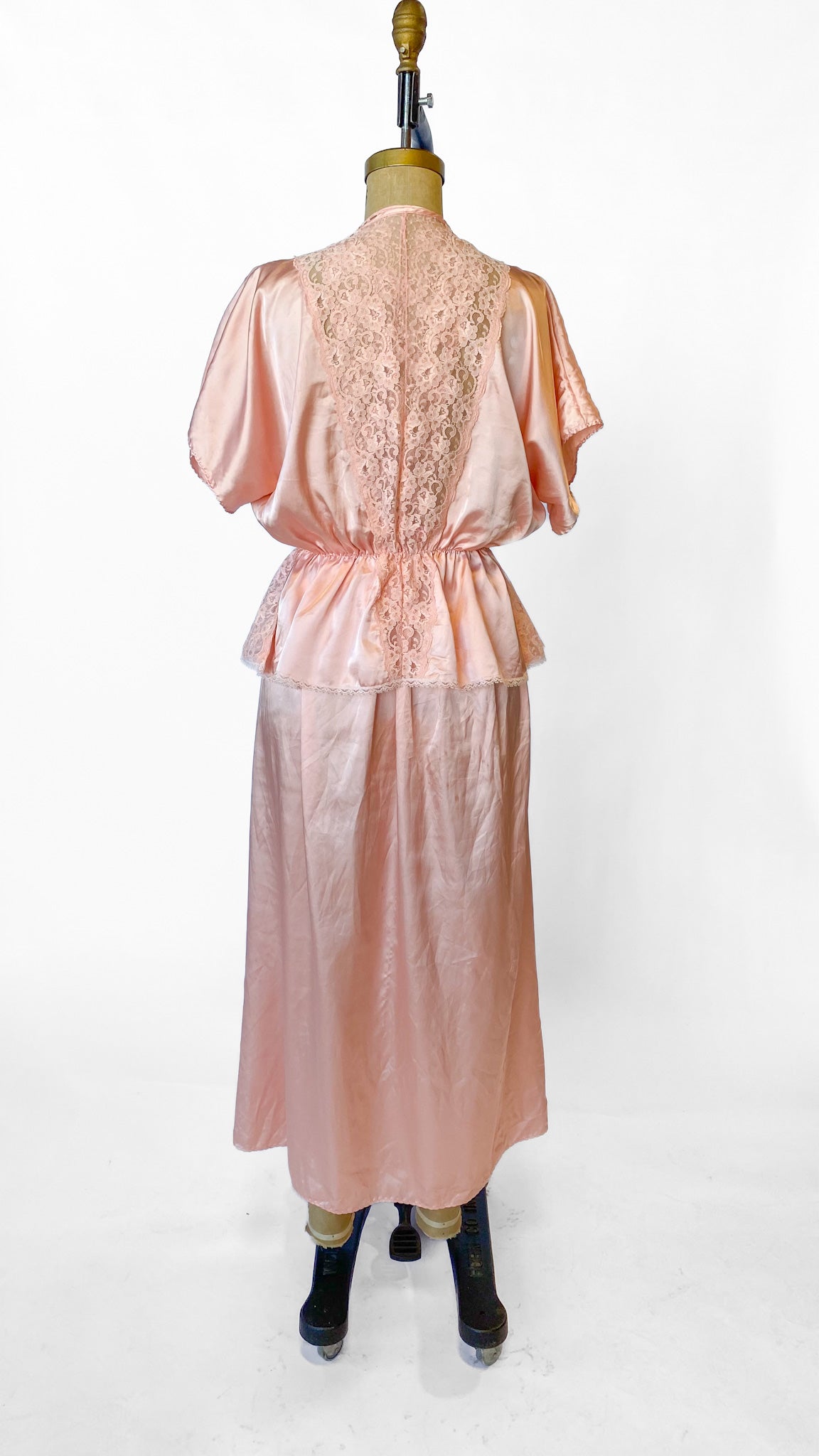 1990s Pink Lace Nightgown Set, sz. M-L
