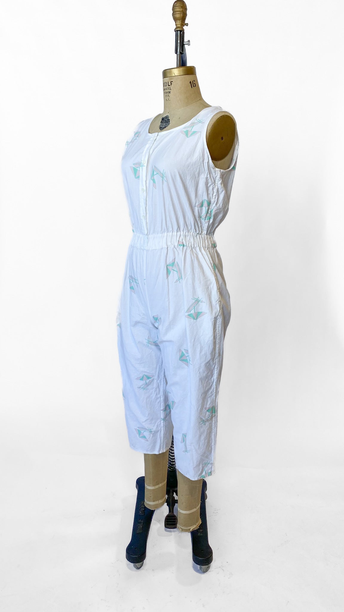 1980s White Vacation Jumpsuit, sz. XL-1X