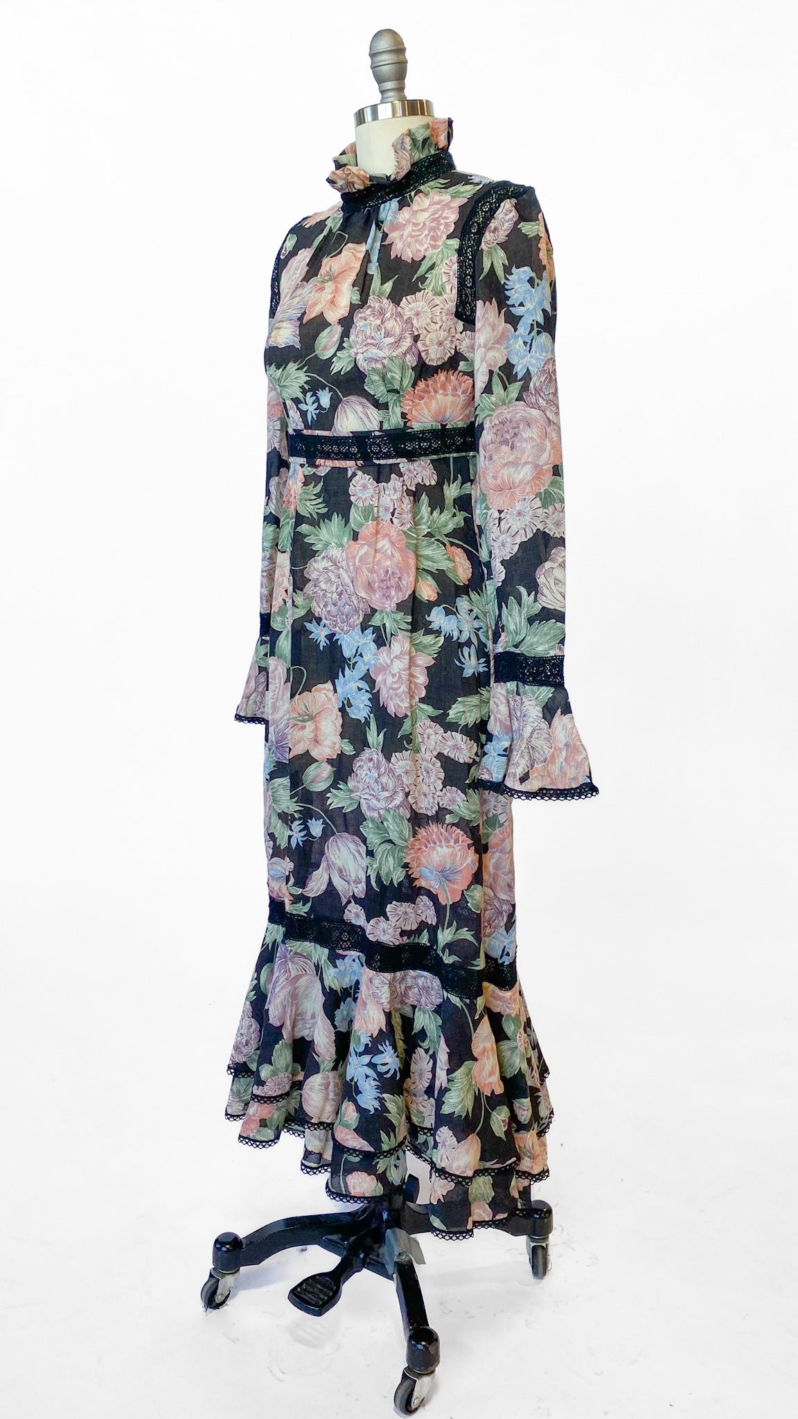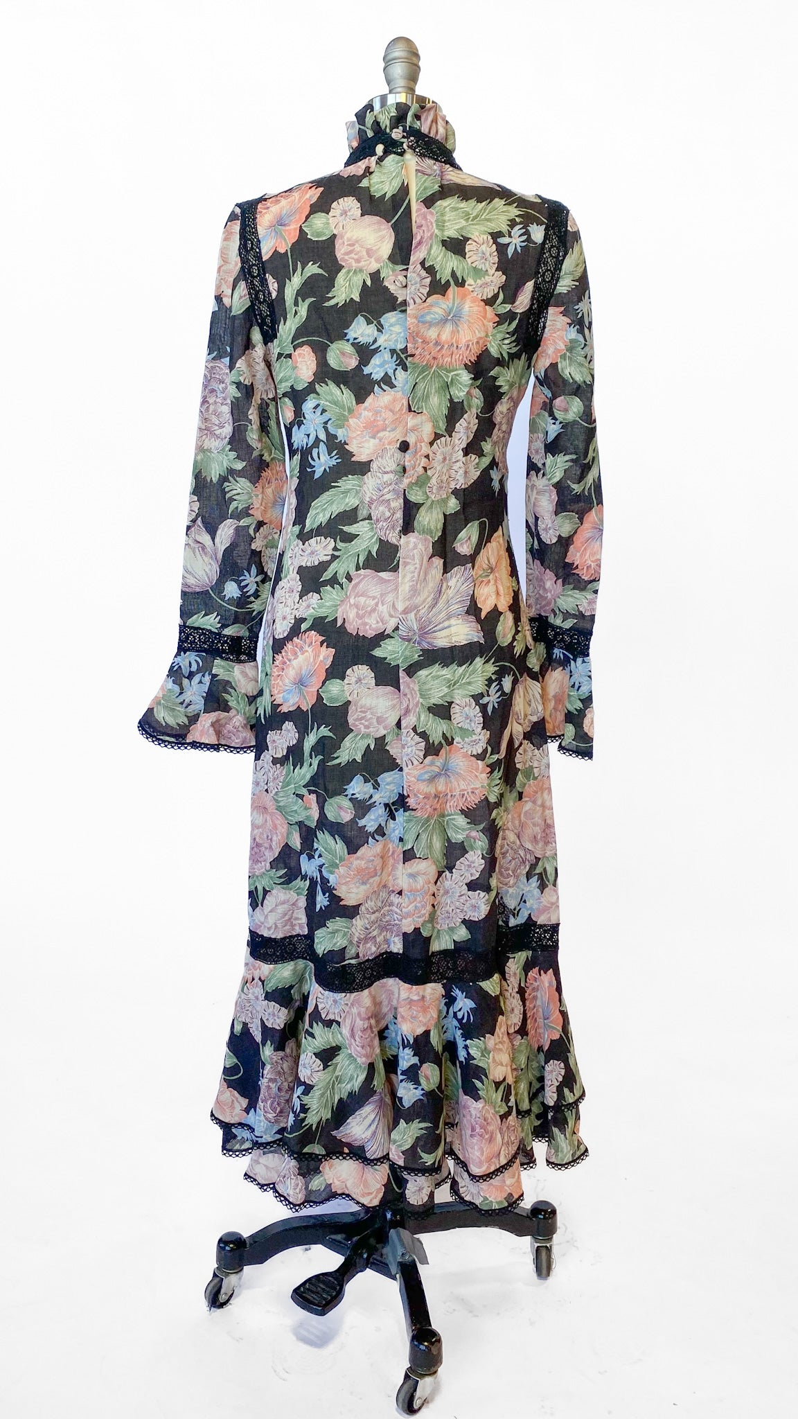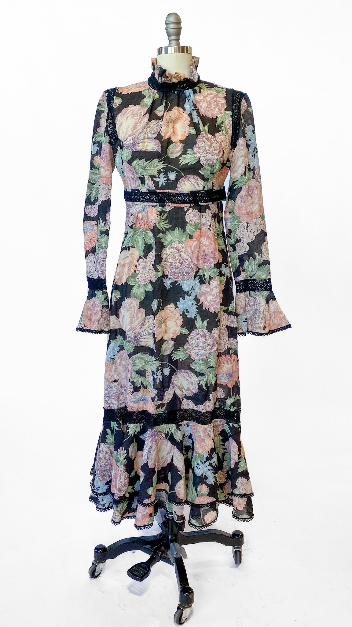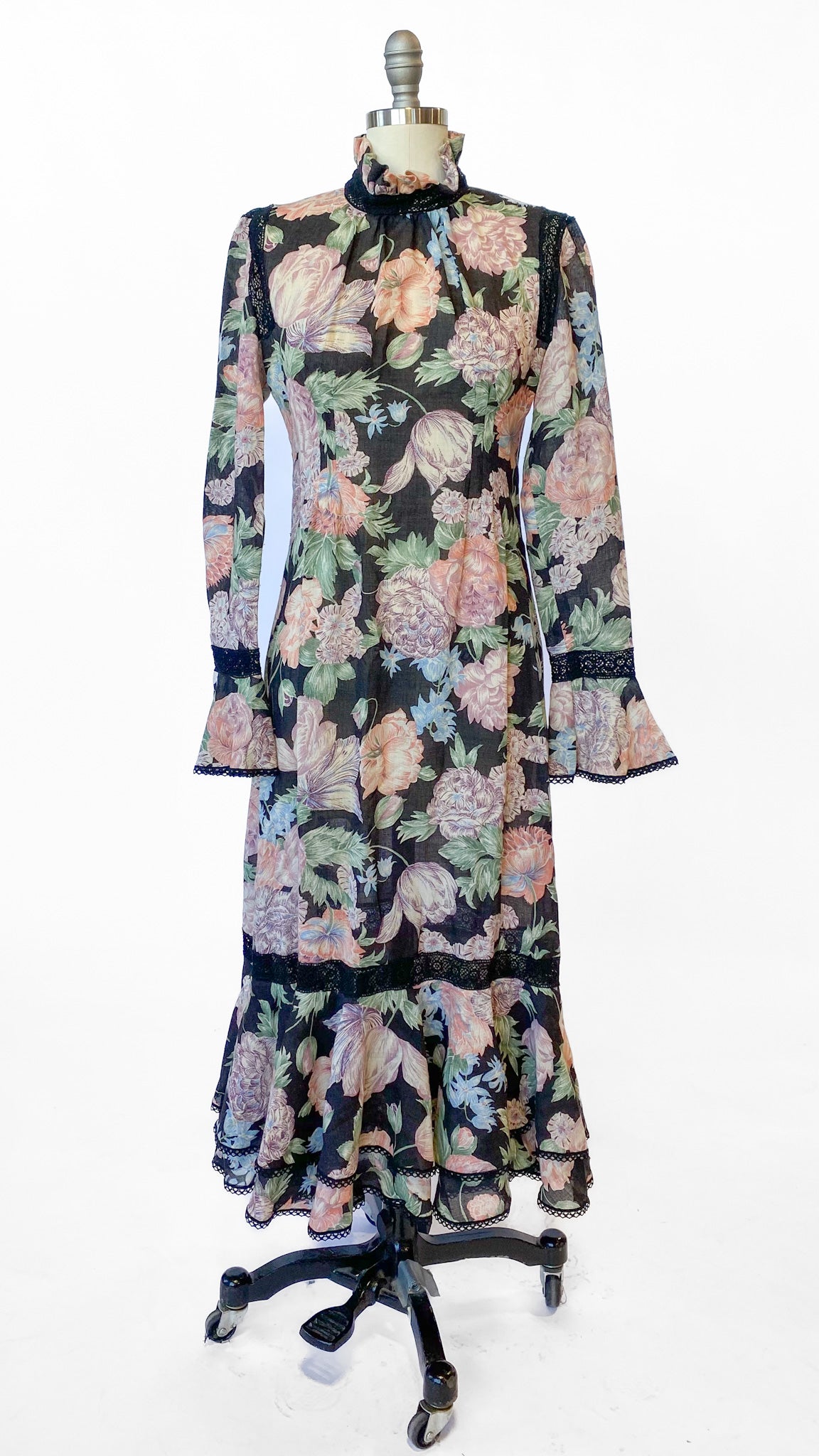 1970s Giorgio Sant'Angelo Black Floral Dress, sz. S