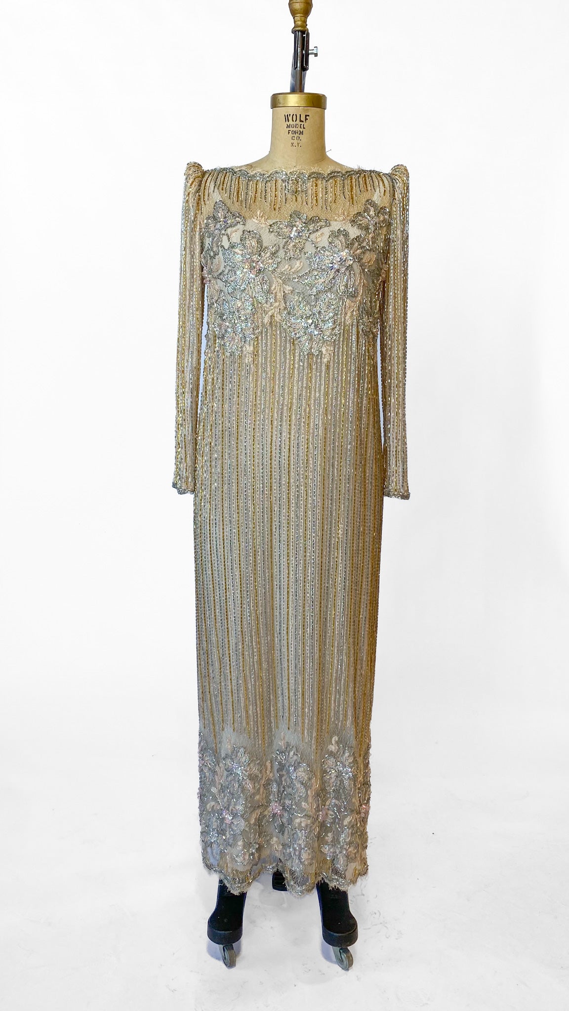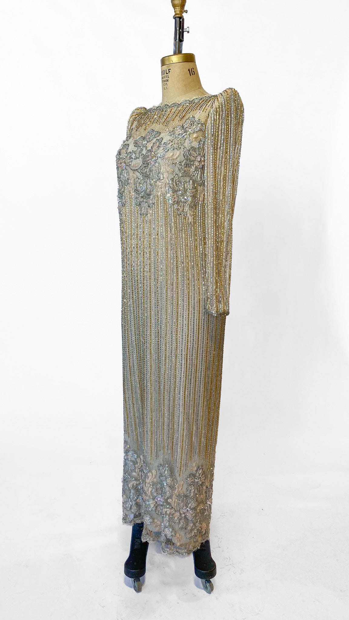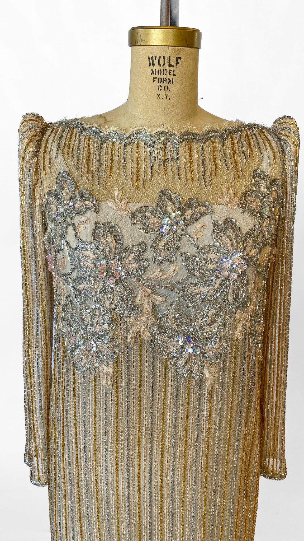 1980s Fernando Pena Gold and Pink Beaded Dress, sz. M