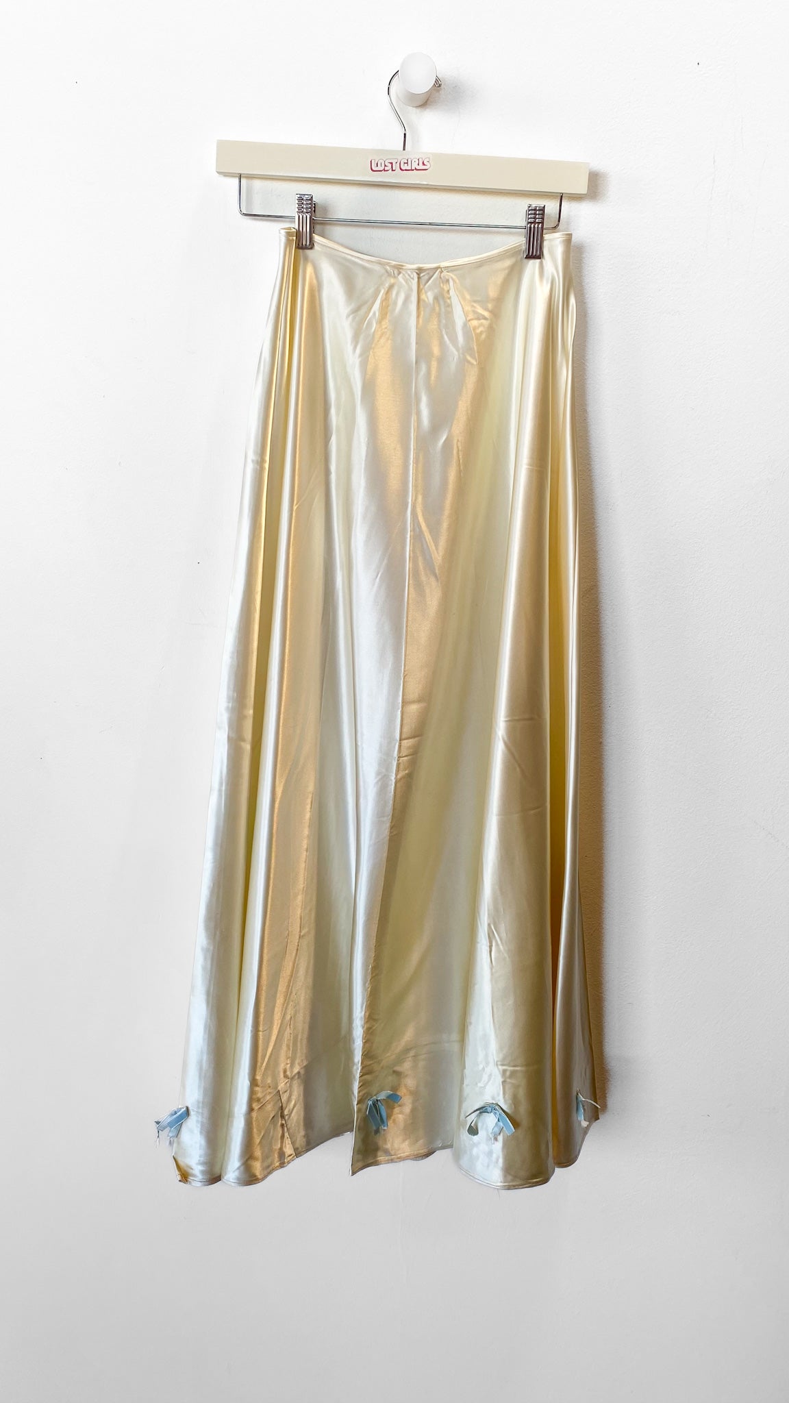 1930s Ivory Satin Circle Skirt with Bows, sz. XS