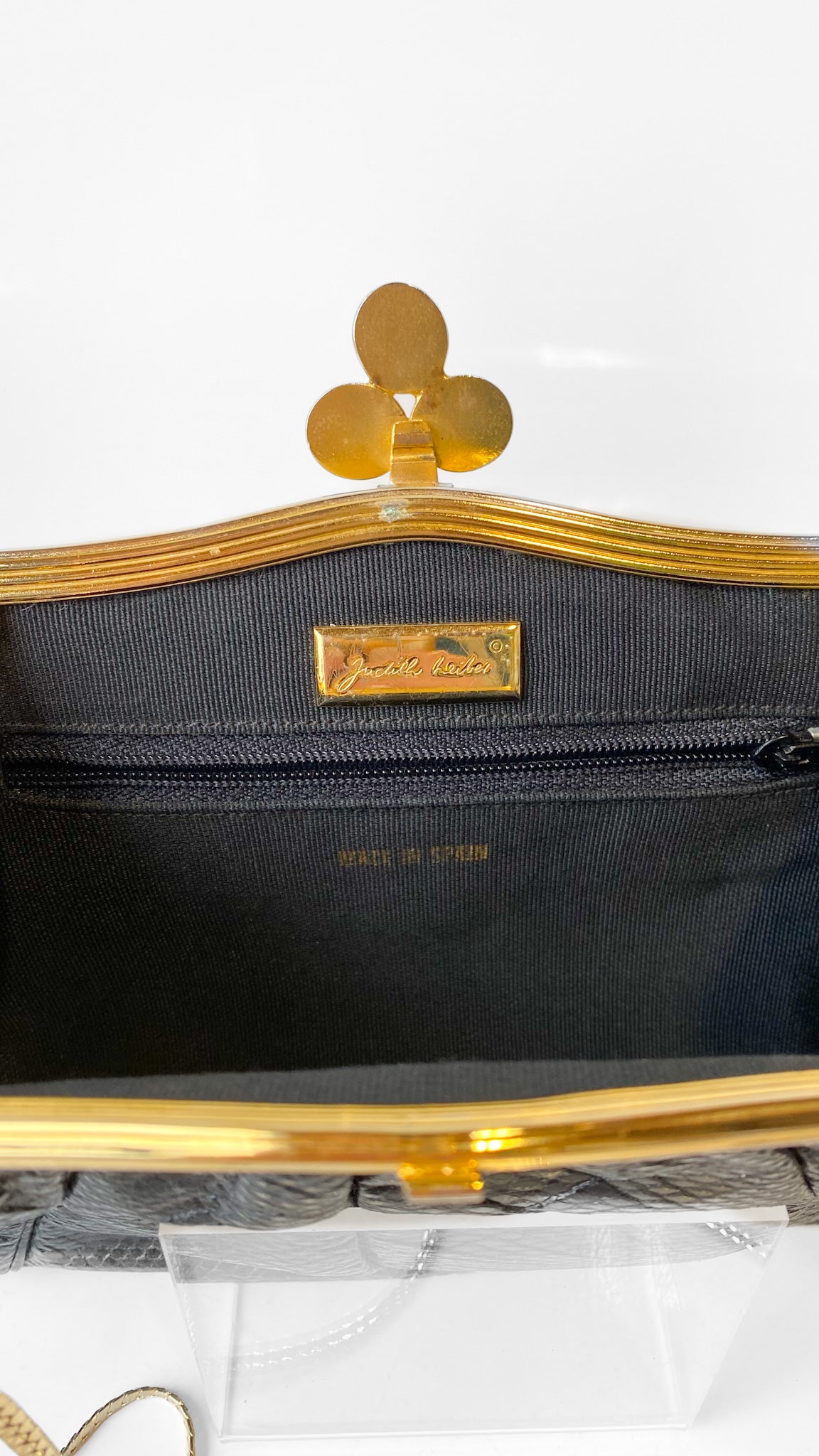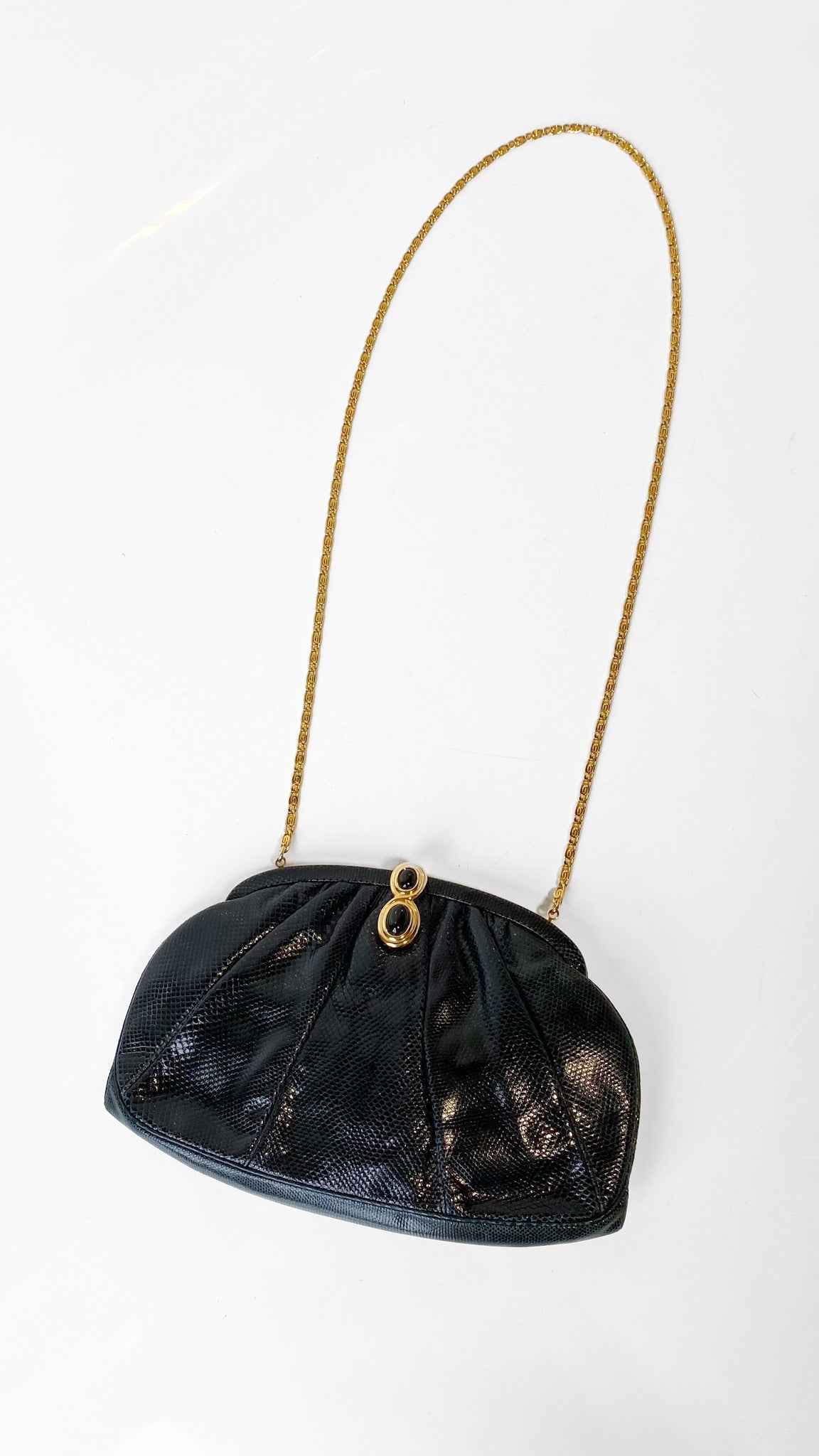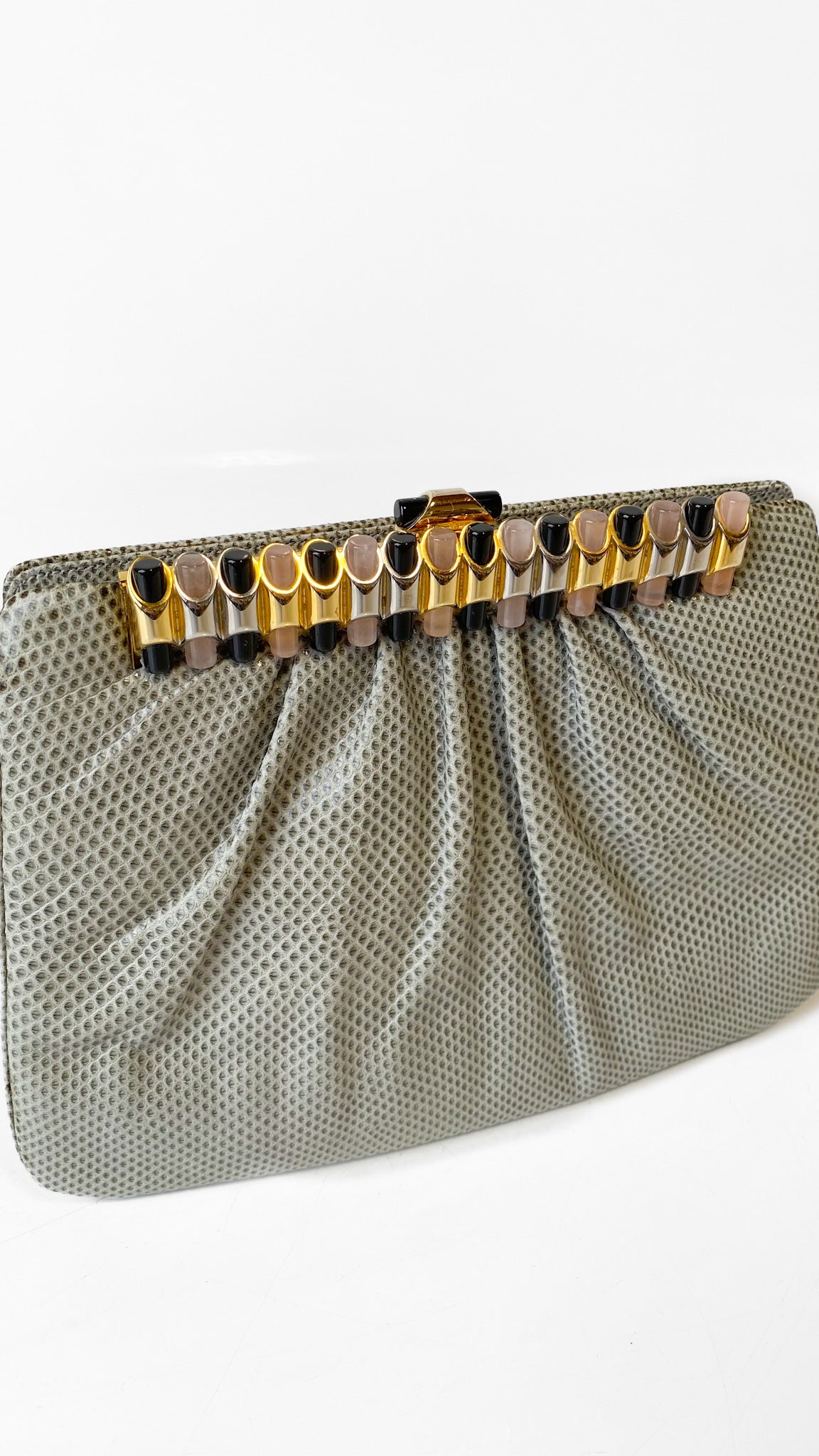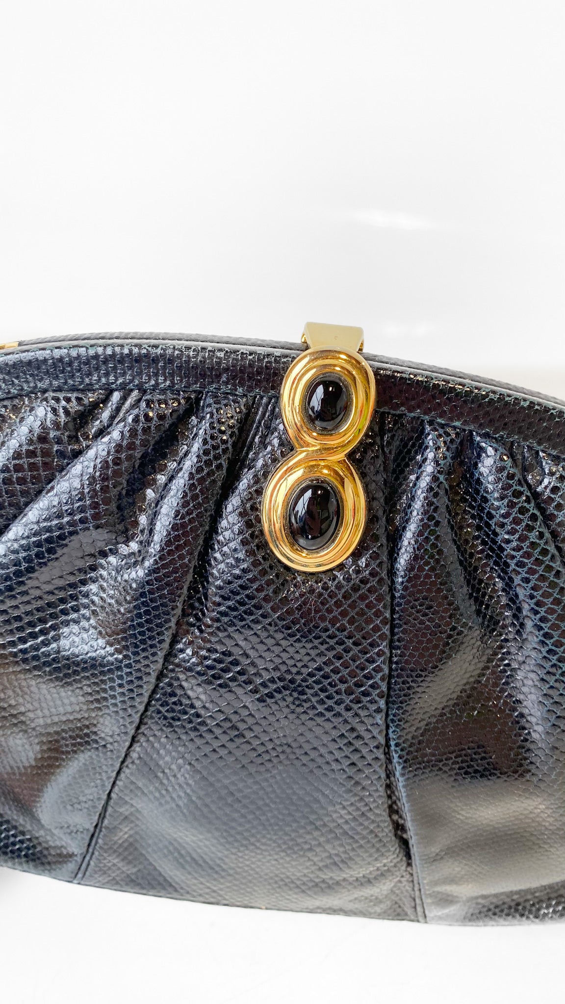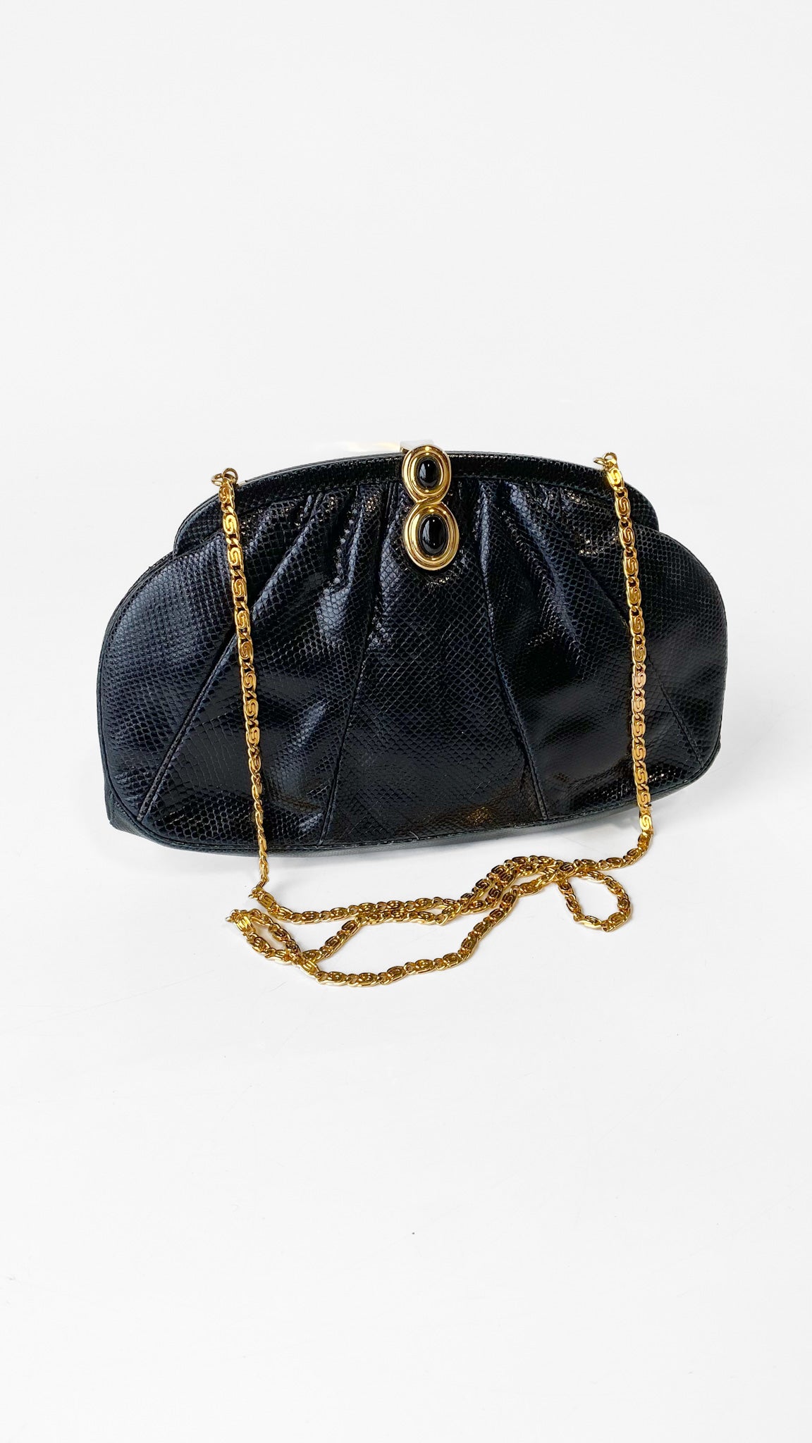 1980s Judith Leiber Black Leather Jewel Clasp Clutch