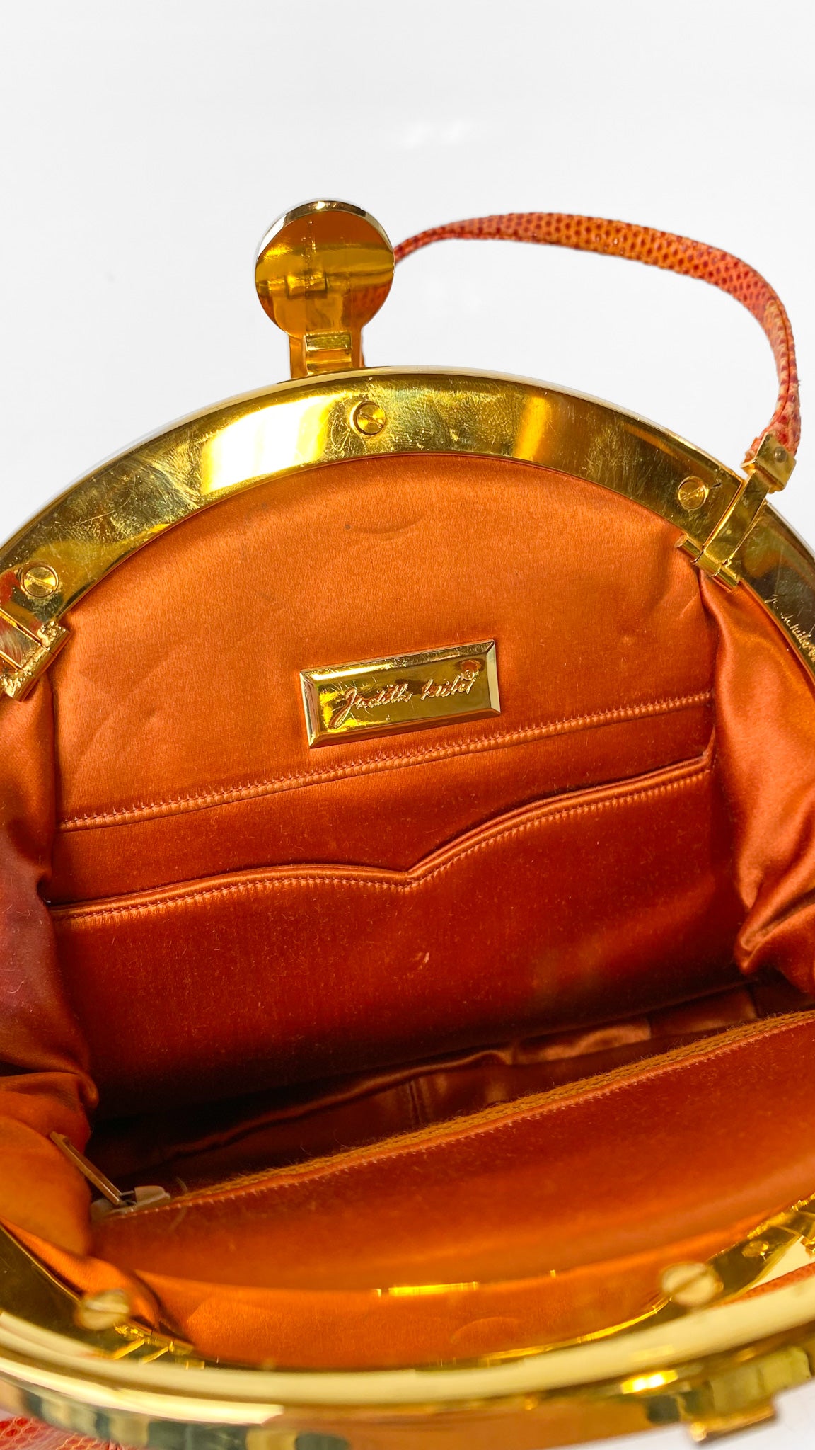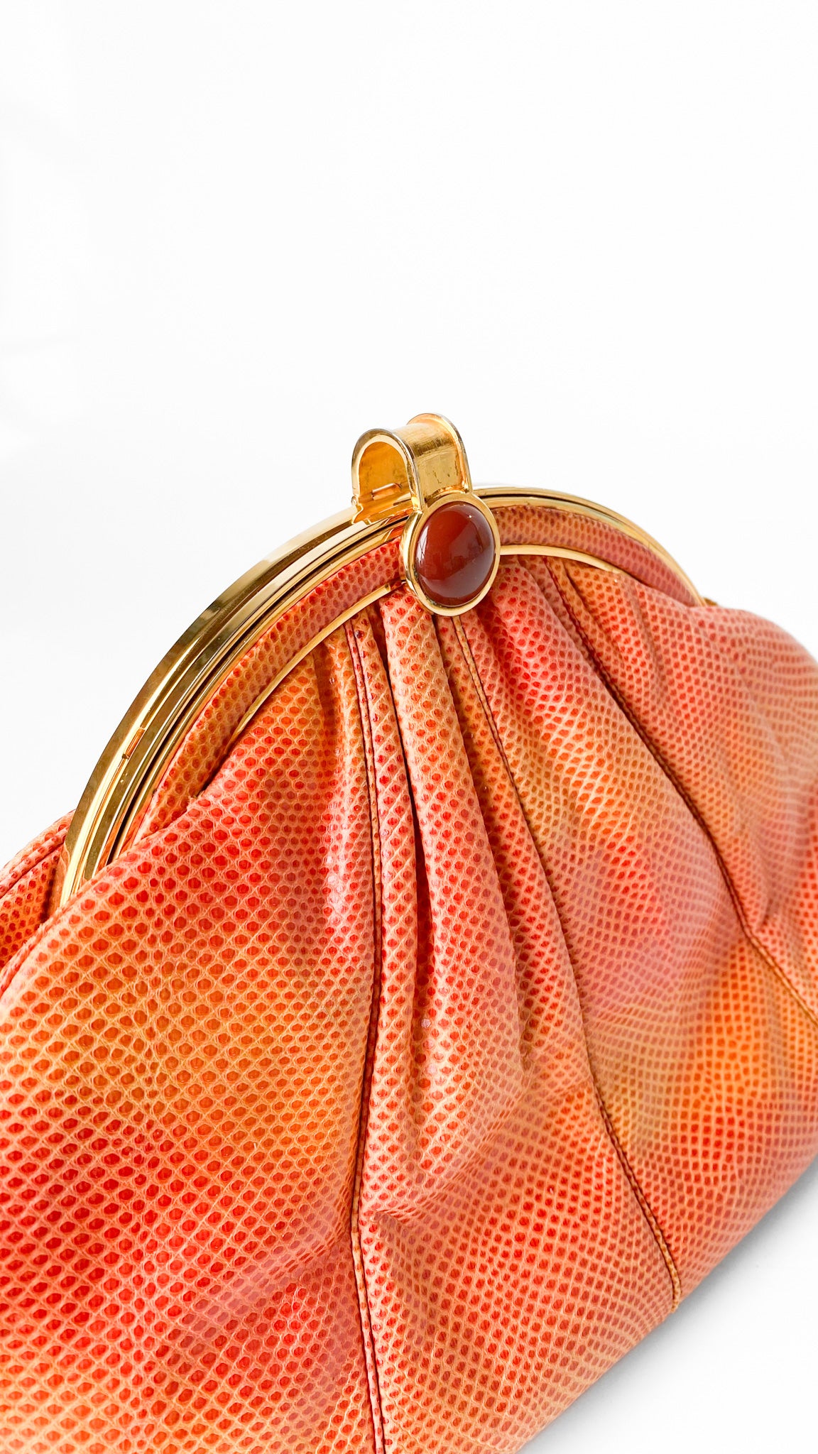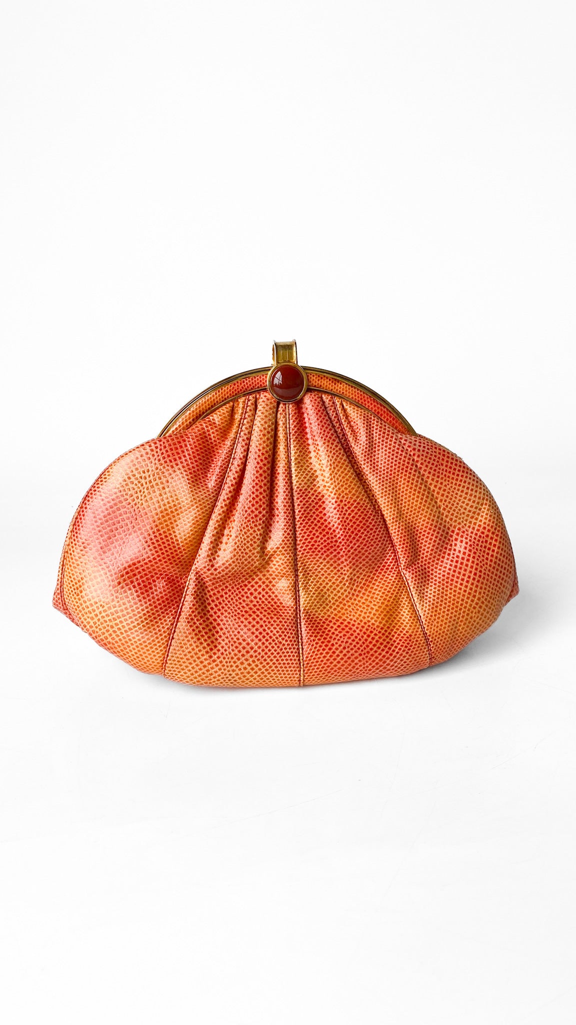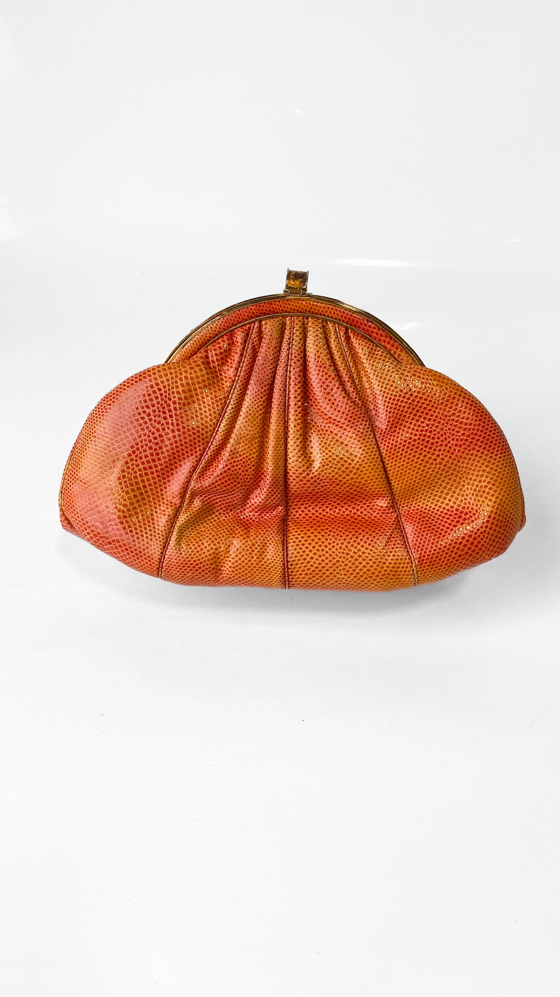 1980s Judith Leiber Orange Leather Clamshell Clutch