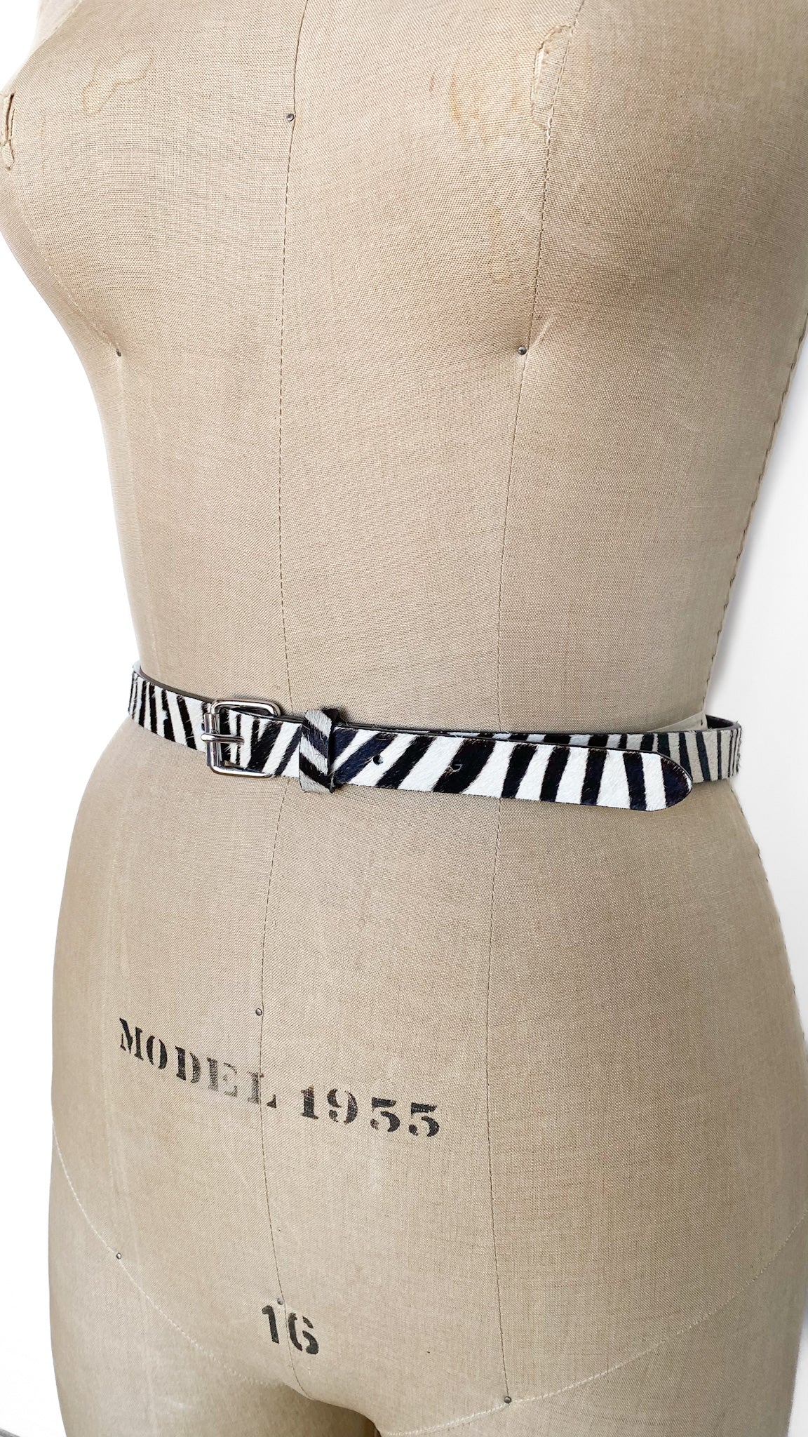 Y2K Zebra Mohair Skinny Belt Size S-M