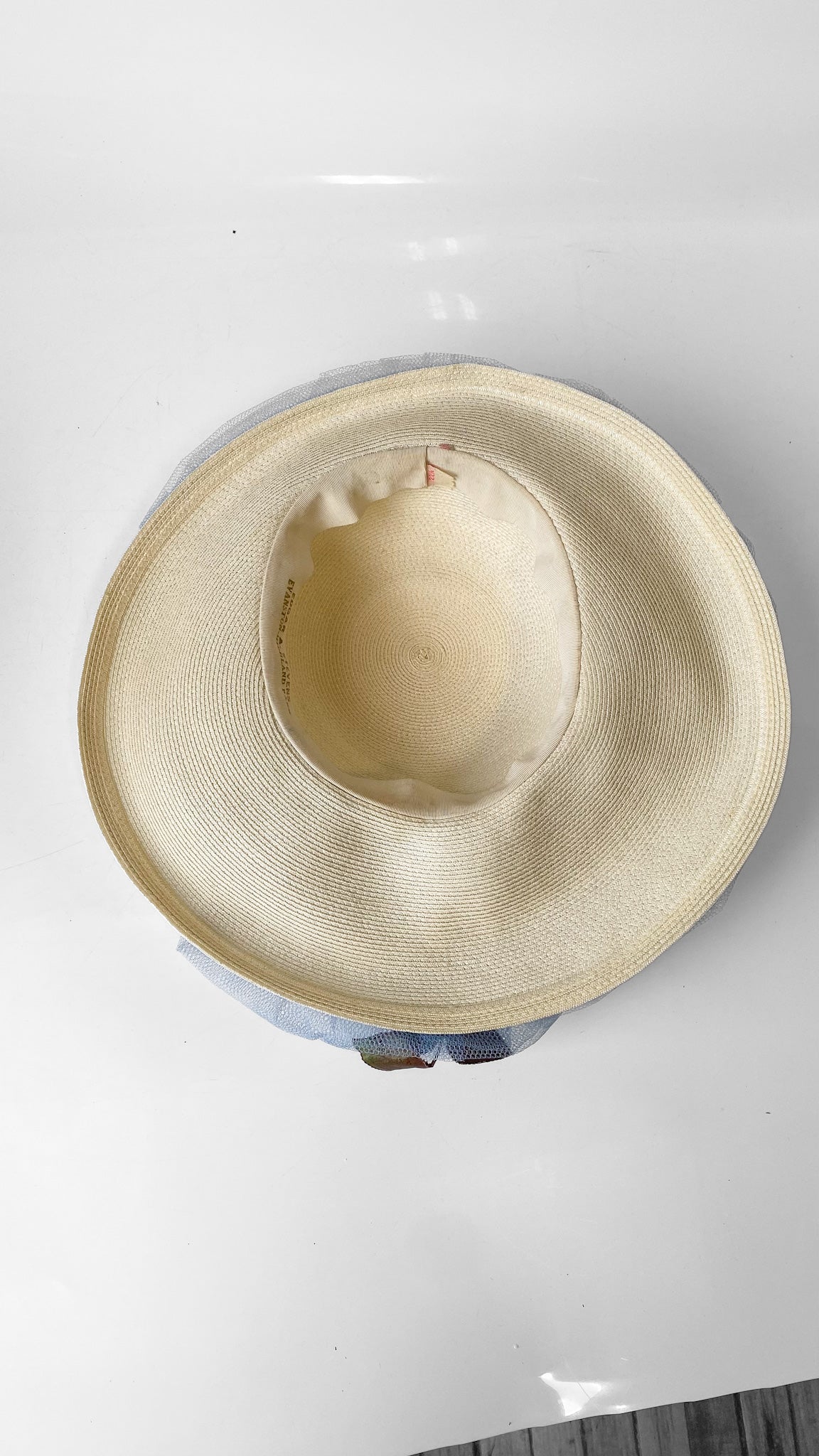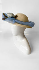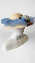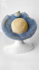 1950s Blue Tulle on Straw Cartwheel Hat
