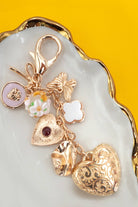 Unique touch to your bag with this charming bag charm featuring a delightful mix of hearts, bows, flower, clover, butterfly and bead charms. The pastel colors and eye-catching design make it a fun and stylish accessory for purses, backpacks, or key rings.