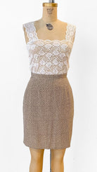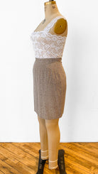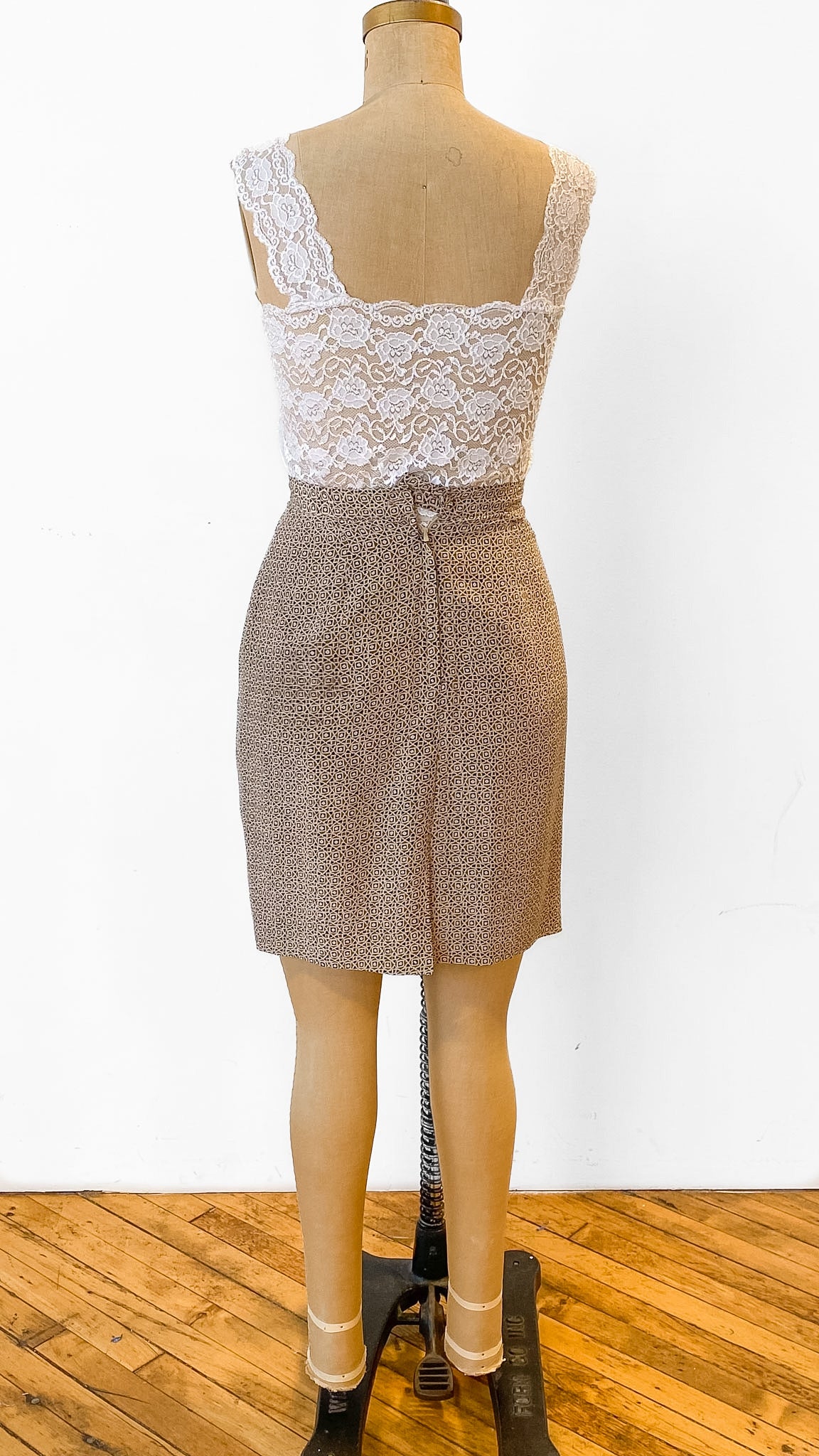 Y2K Beige + Green Patterned Silk Skirt, sz. S
