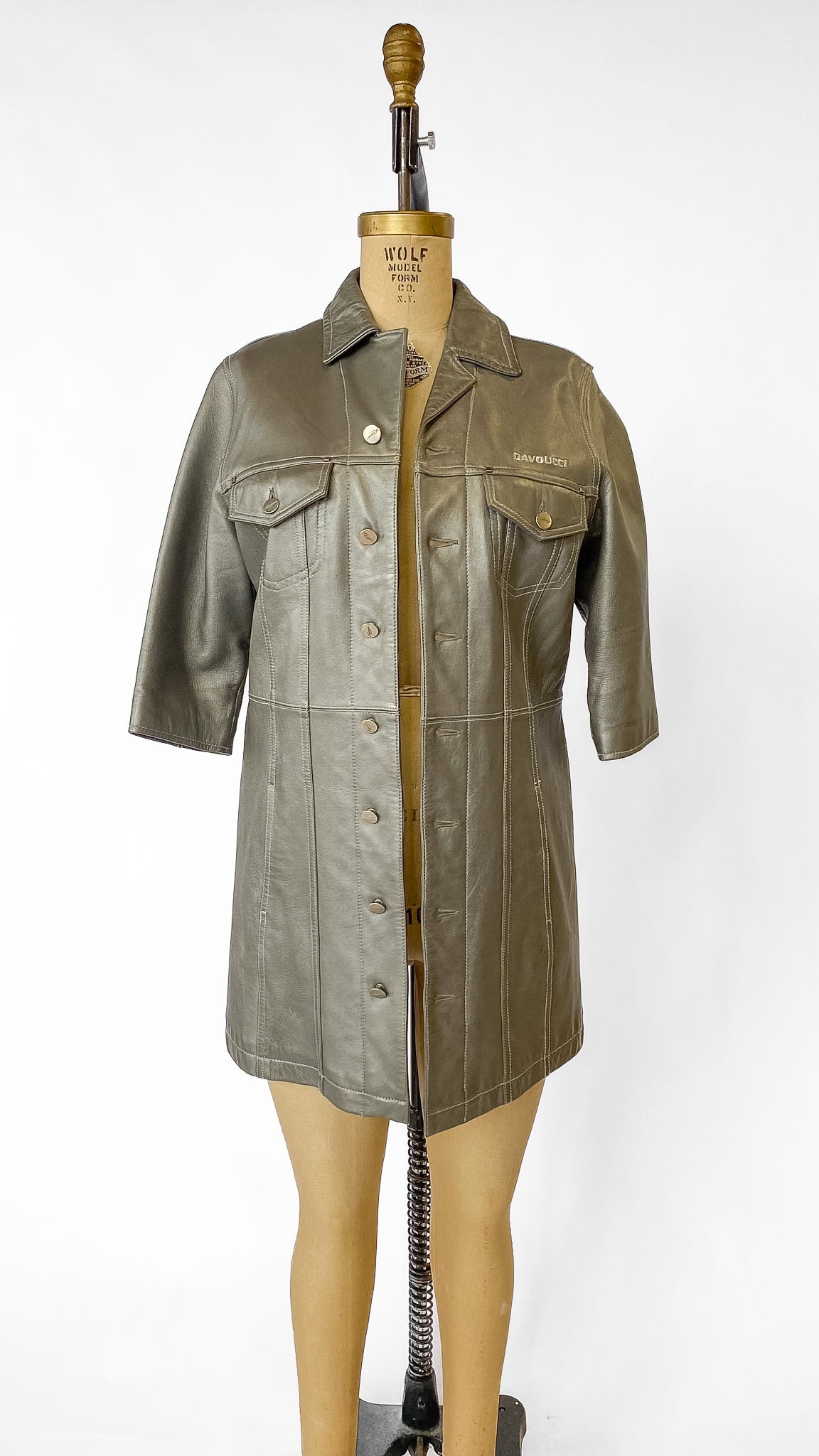 Y2K Davoucci Silver Leather Jacket, sz. L