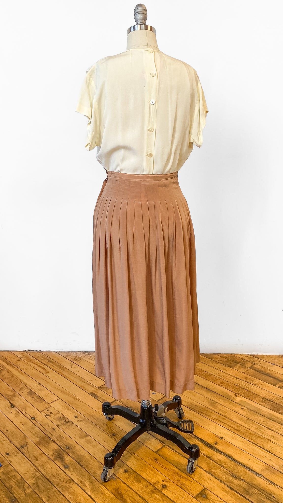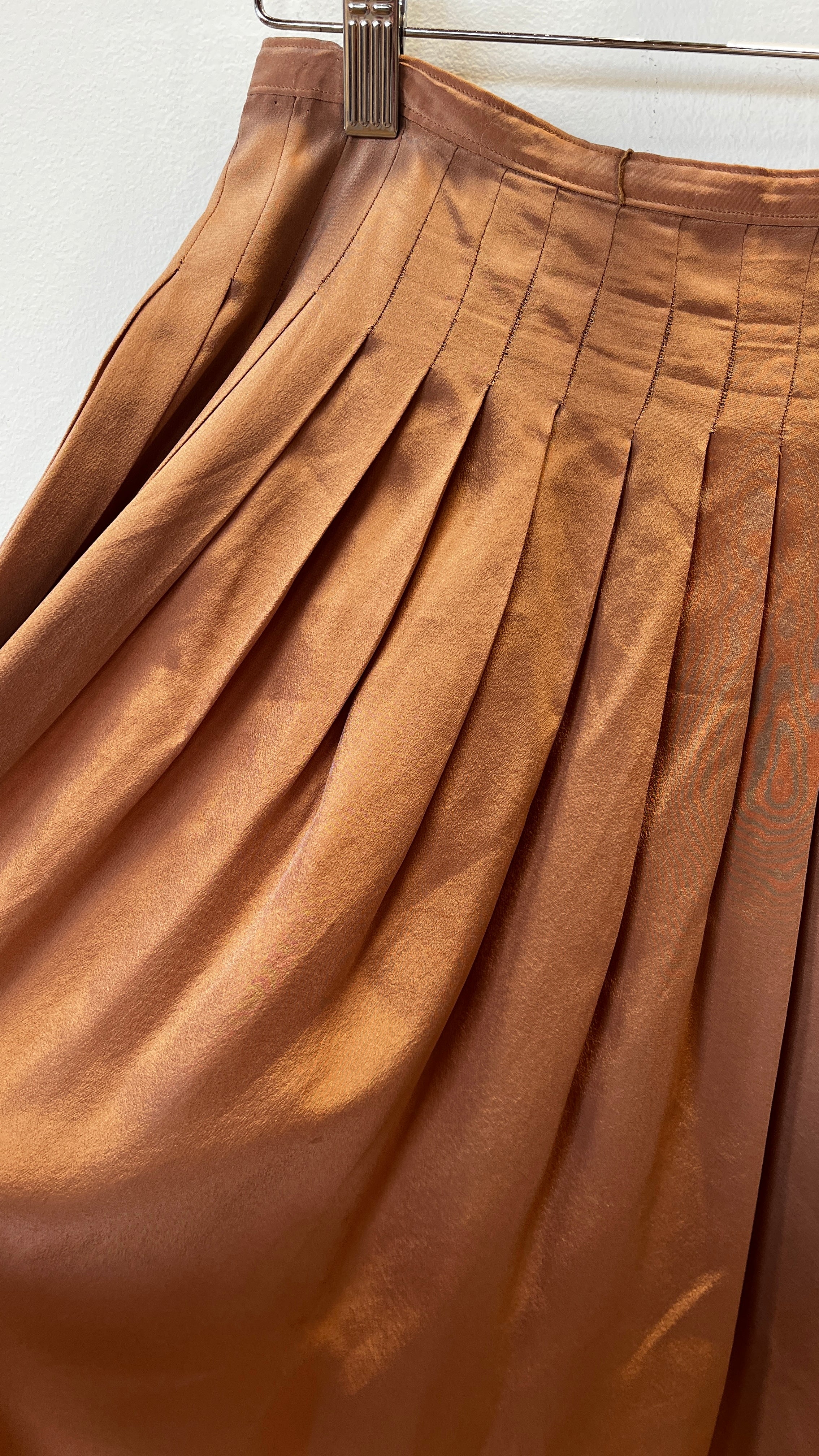 1980s Tan Pleated Silk Skirt, sz. S