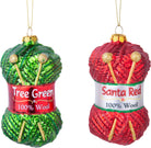 Blown glass knitting yarn ornaments in green or red. Please note that due to the nature of the materials, slight color variations may occur between individual items and compared to images. These differences are minimal and do not affect the overall appearance.