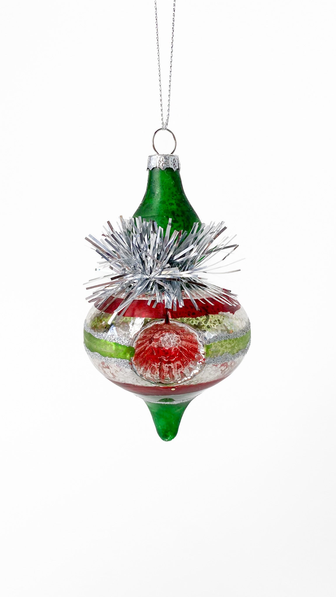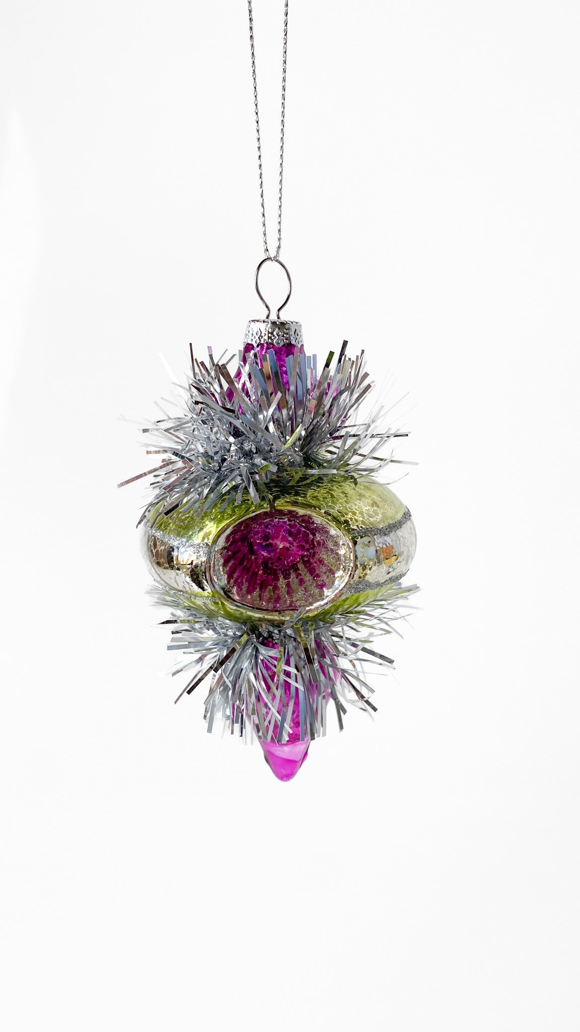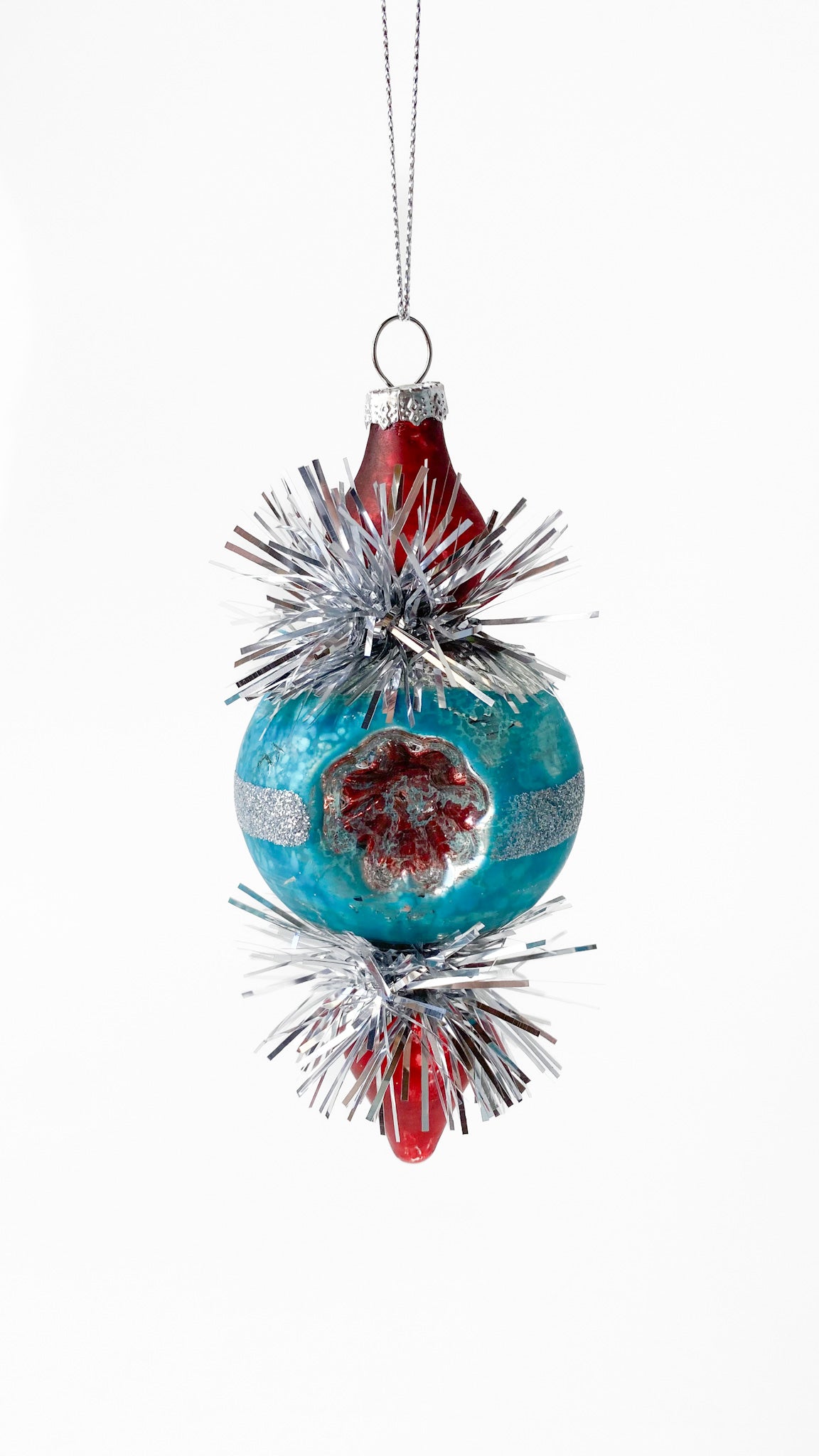 Bring a touch of vintage charm to your holiday decor with the Glass Retro Tinsel Ornament. These ornaments feature colorful finials with tinsel accents, perfect for adding a retro flair to your Christmas tree. These ornaments are ideal for creating a nostalgic holiday look.