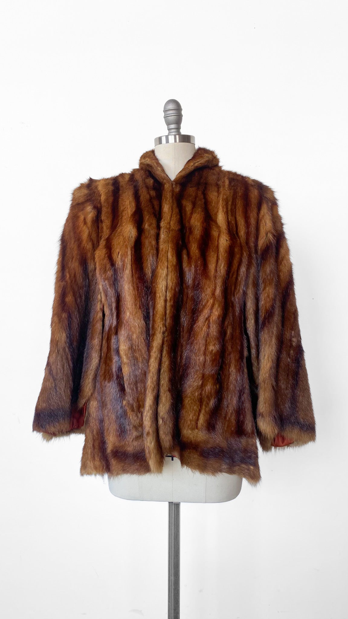 1950s Brown Fur Cape Jacket, sz. XL
