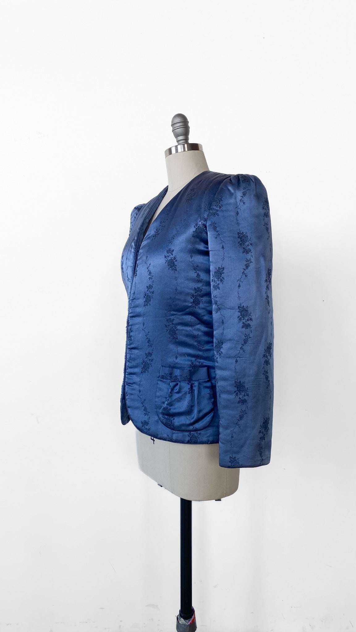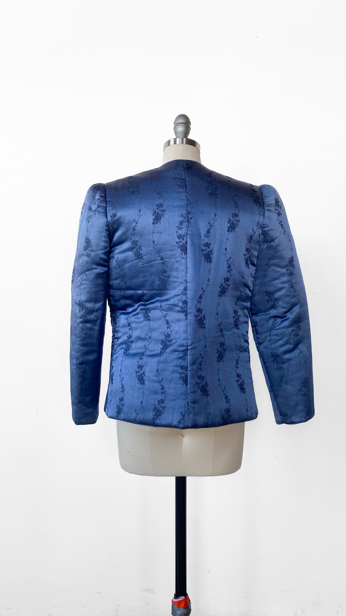 1980s Blue Floral Embossed Puffer Jacket, sz. M