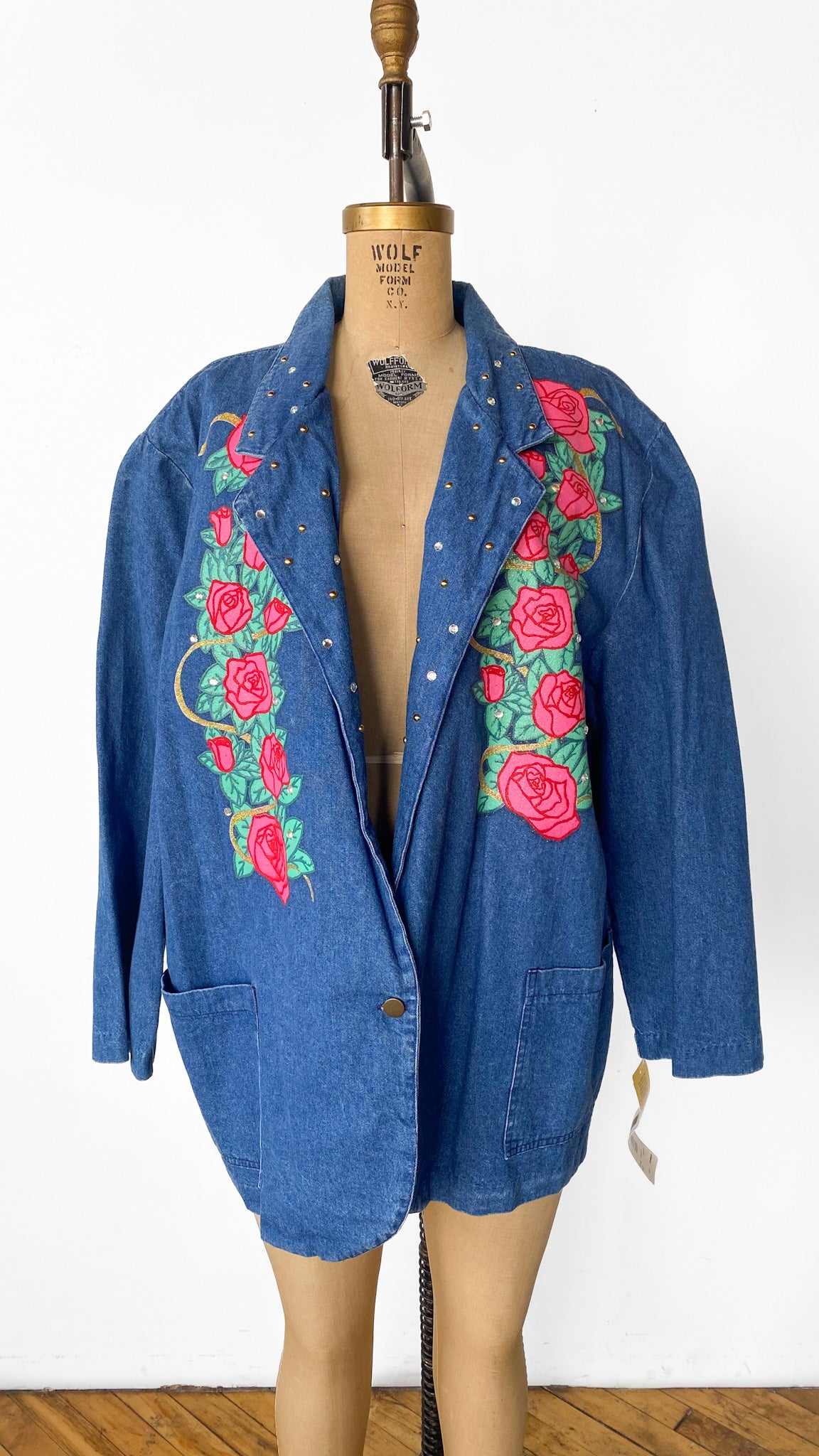 1980s Rose Painted Denim Blazer, sz. 5XL