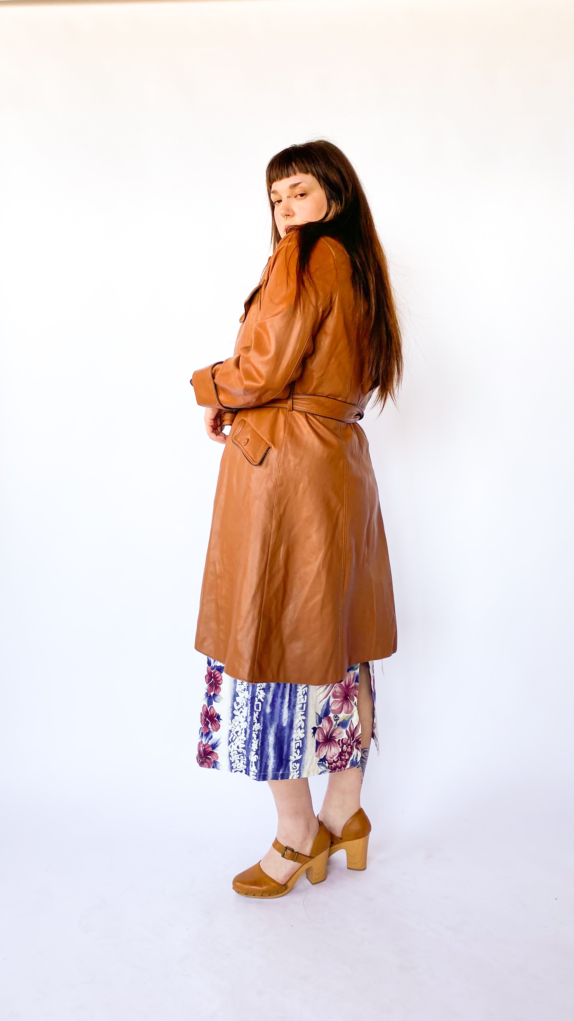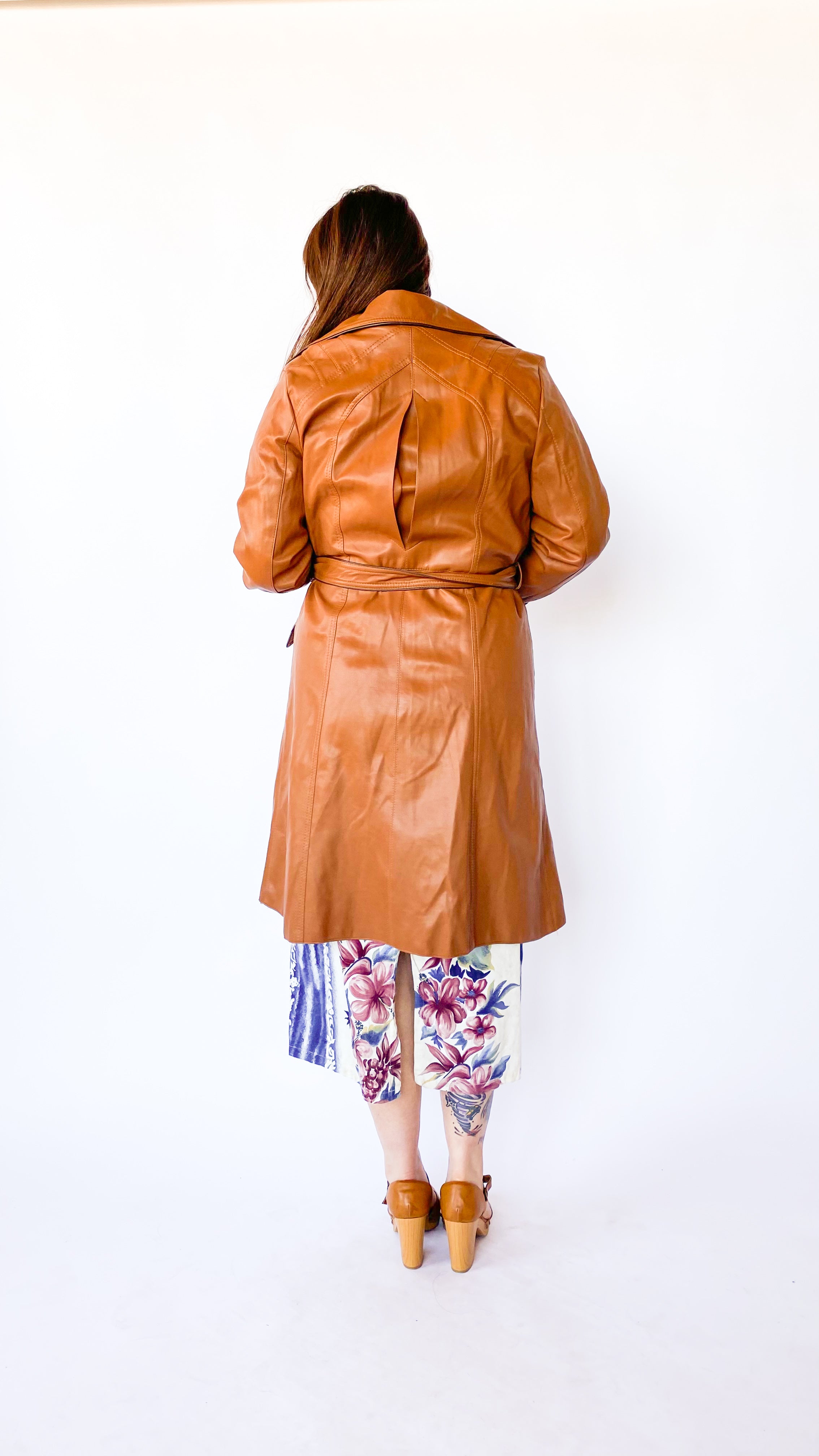 1970s Butterscotch Brown Leather Trench Coat, sz. L