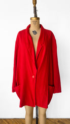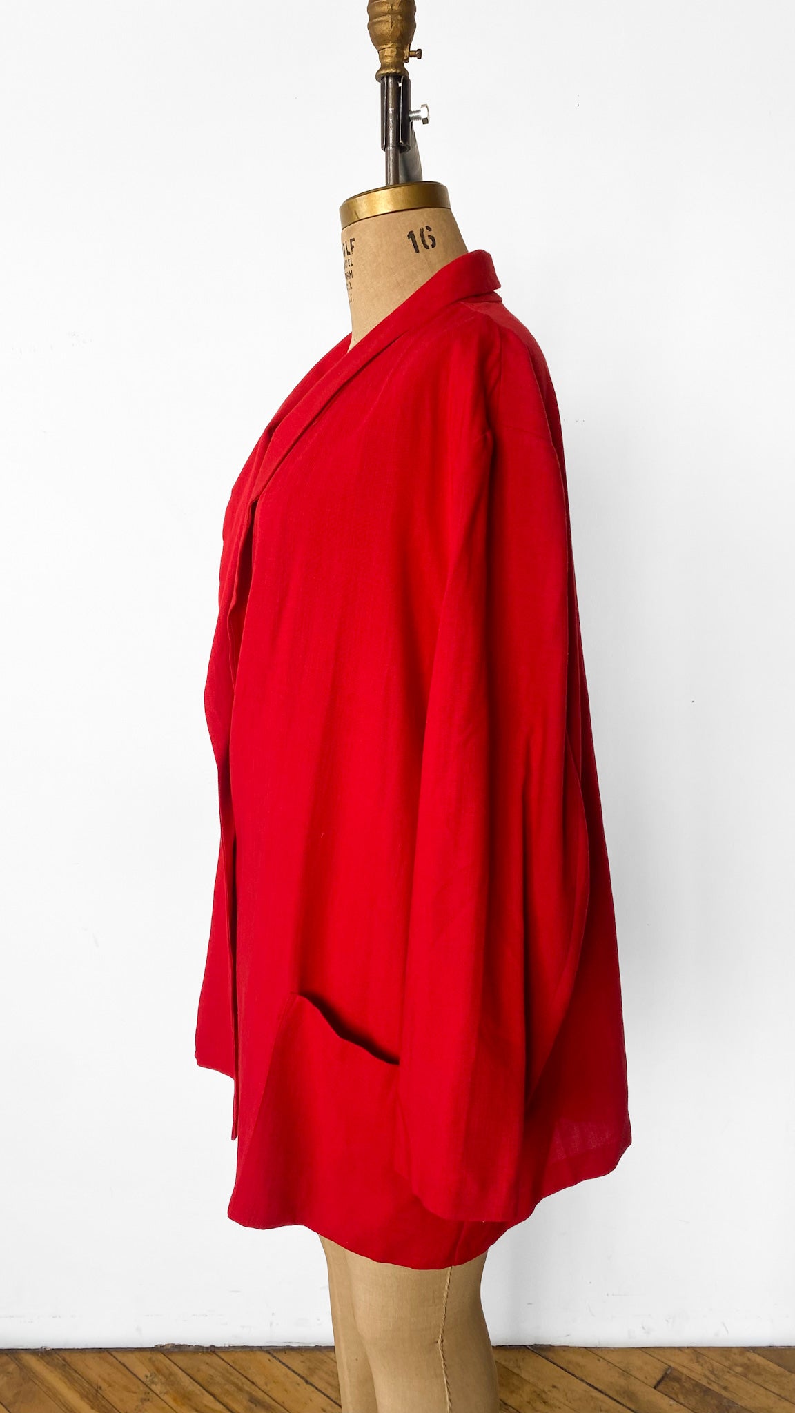 Red single breasted lightweight blazer with two patch pockets. Original tags still attached.