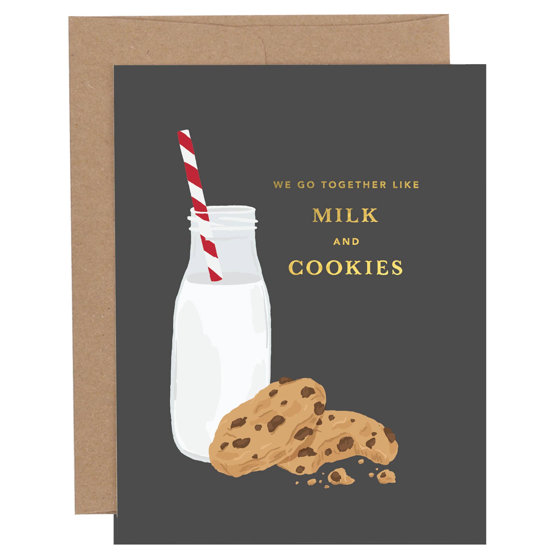 Celebrate the sweetness of friendship with our "Milk and Cookies" Friendship Greeting Card! Featuring the playful phrase "We go together like milk and cookies," this card is adorned with charming illustration and elegant gold foil accents that add a touch of whimsy. Perfect for any occasion—be it a birthday, anniversary, or simply a heartfelt note to a dear friend—this card beautifully captures the essence of strong bonds and shared moments.