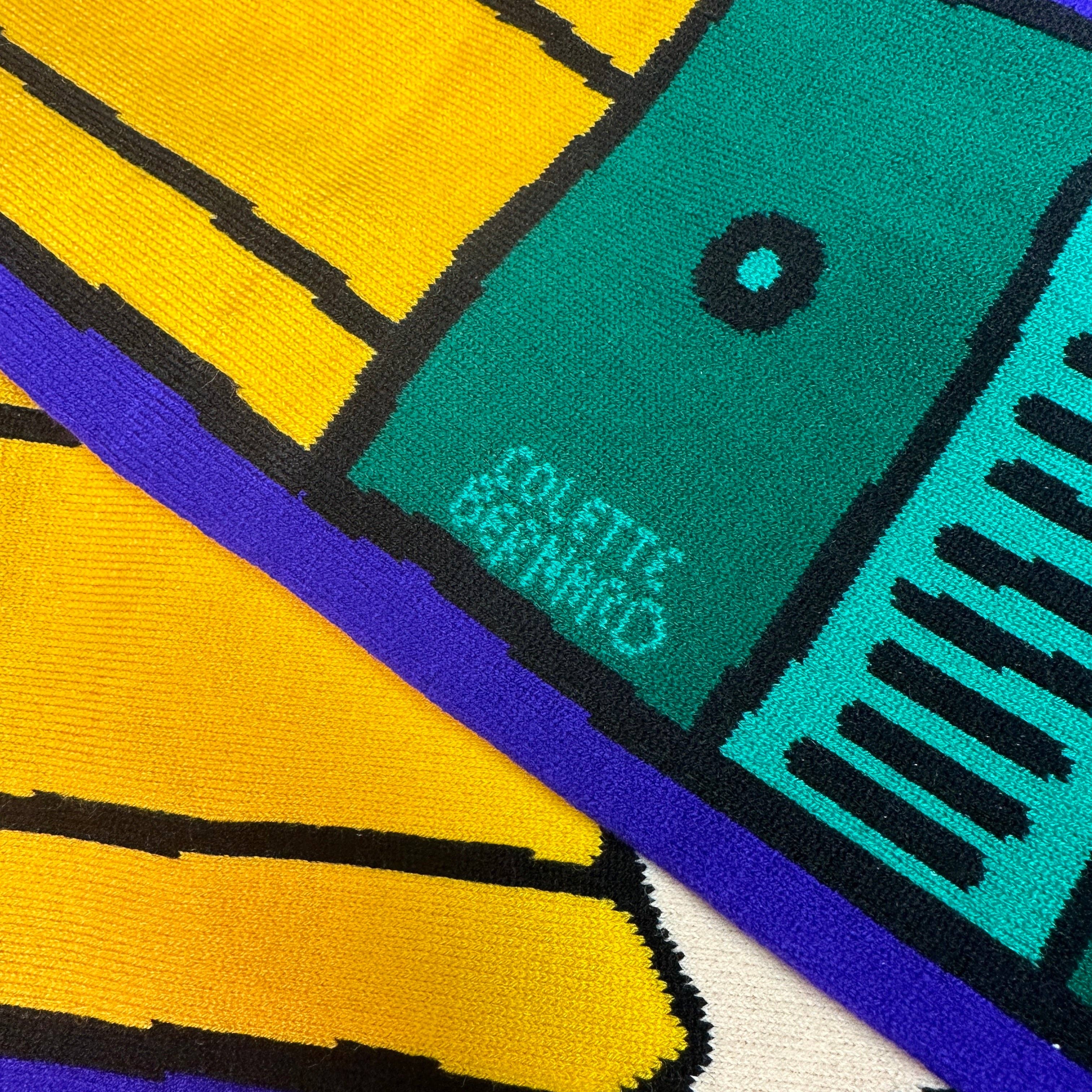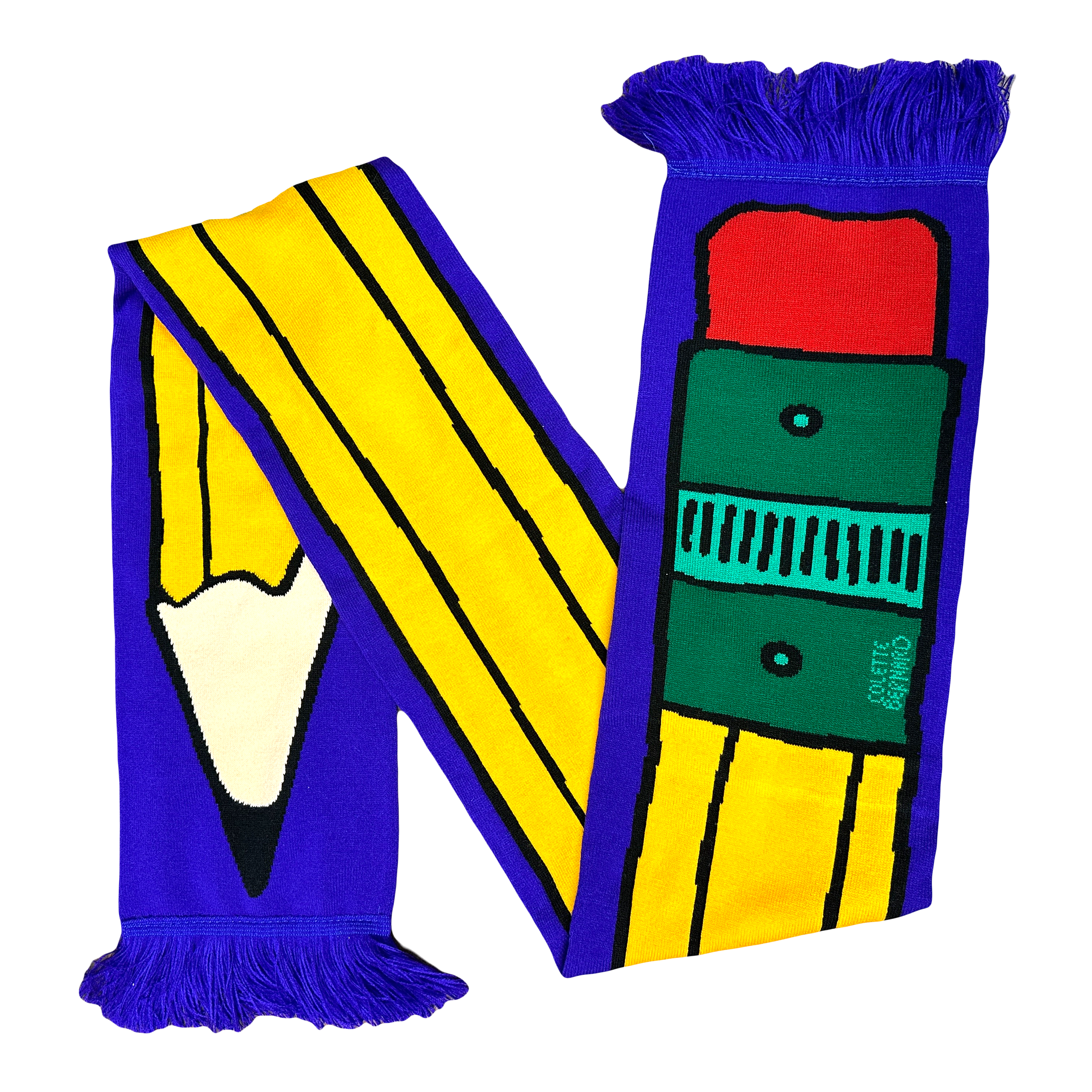 Your winter palette doesn't have to be dull, add a splash of color to your closet while staying warm and cozy with the Pencil Scarf! Vibrant purple background and tassels. Ultra soft to the touch, thick, stretchy and warm. Design visible on both sides. Made by machine.