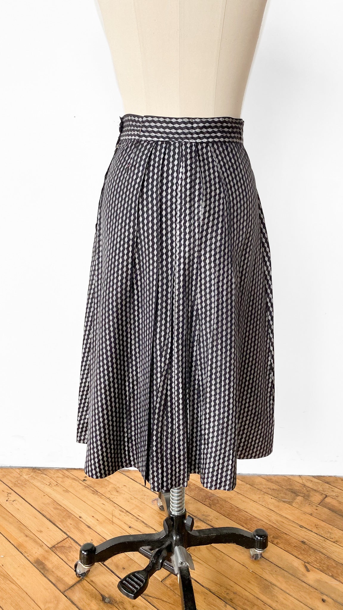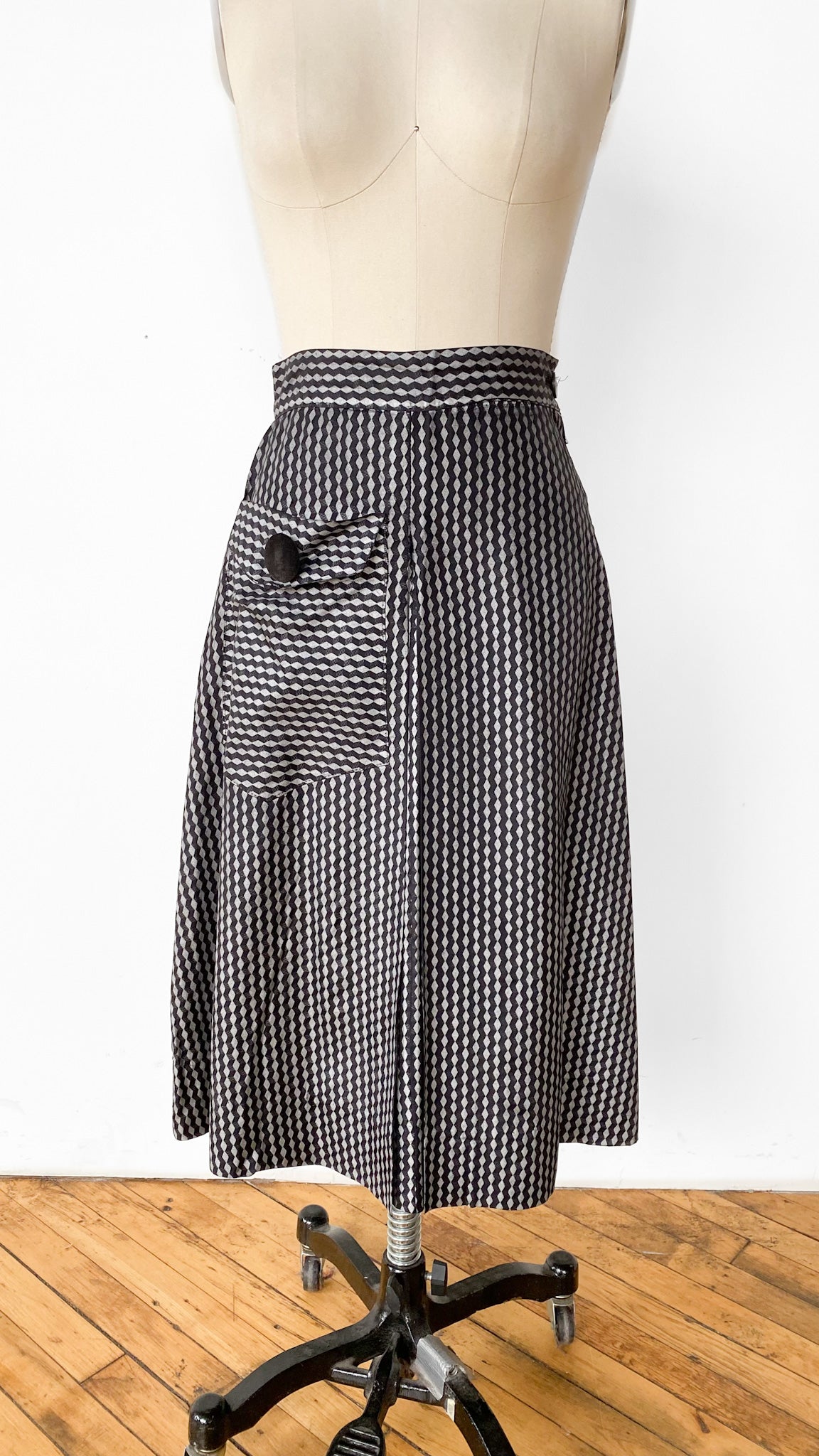 1950s Black + Gray Diamond A-Line Skirt sz. S