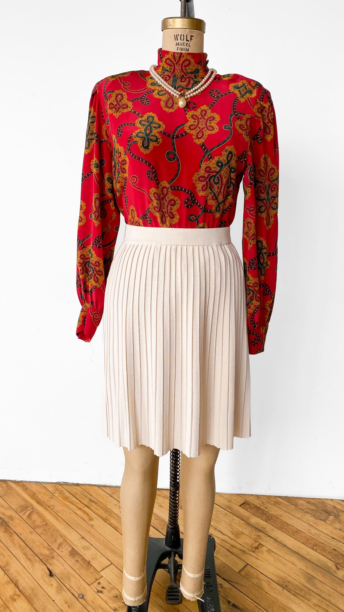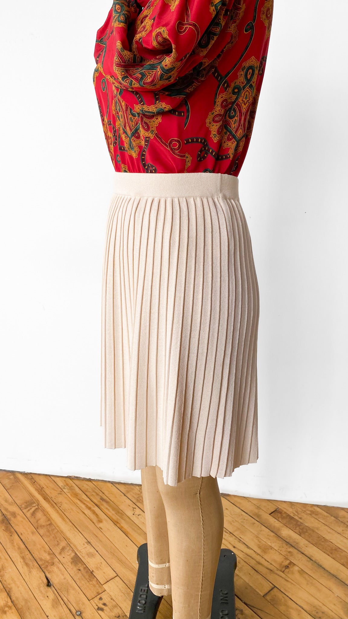 1980s Designer St. John Ivory Pleated Skirt sz. M-L