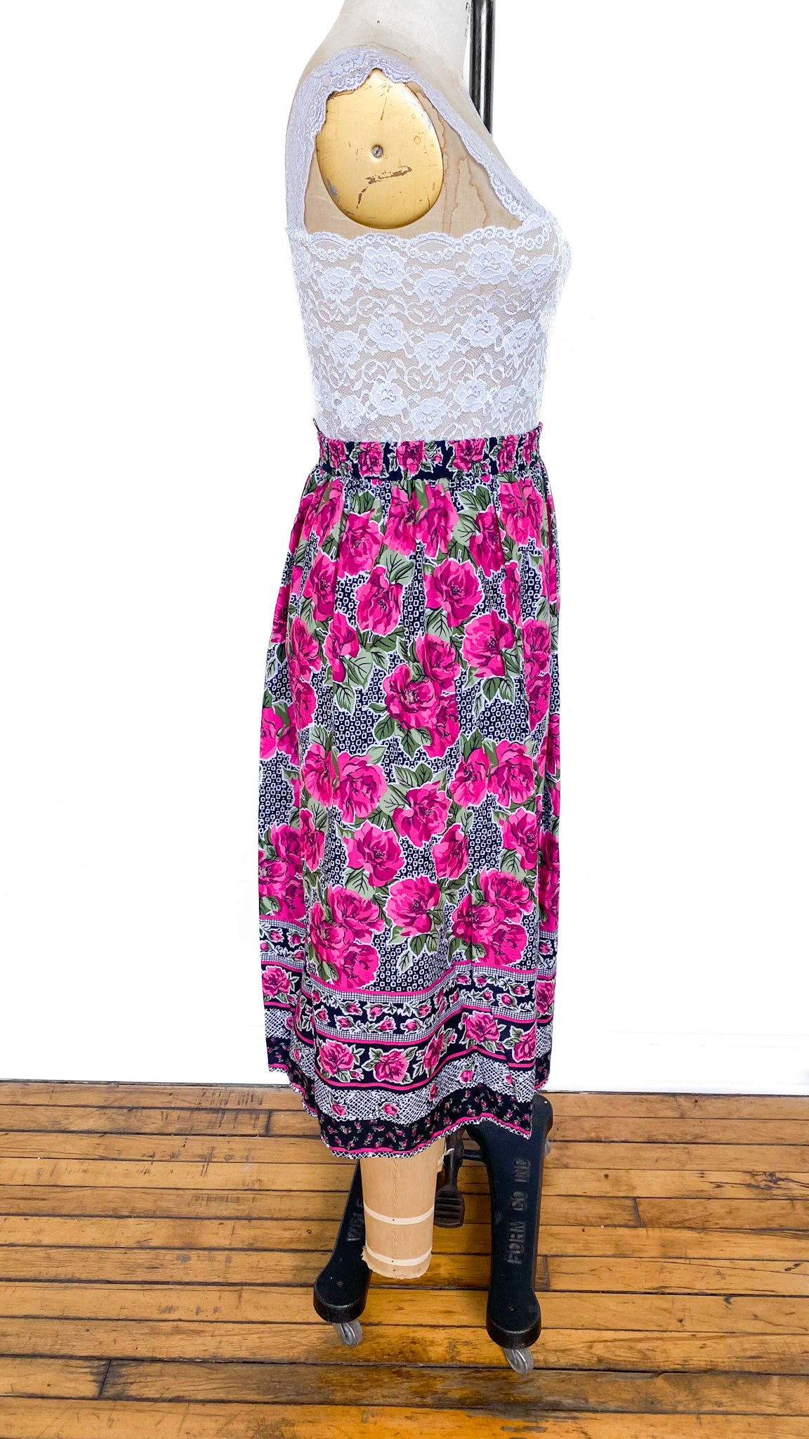 1980s Pink Carnation Skirt, sz. 1X-3X