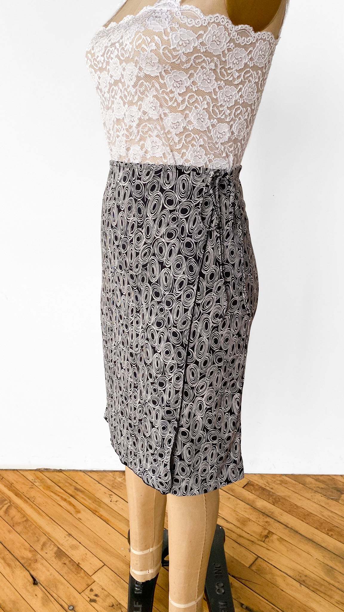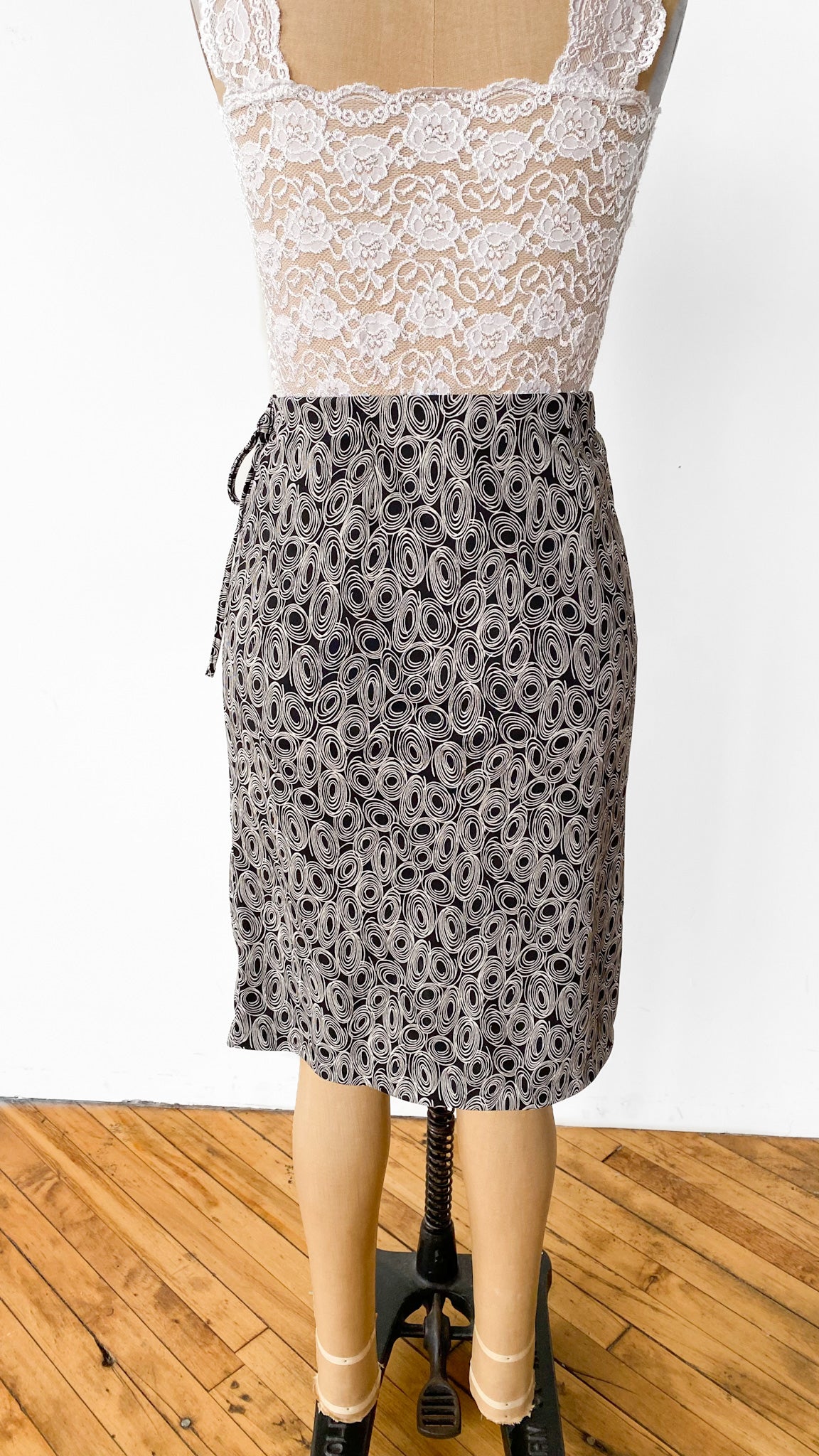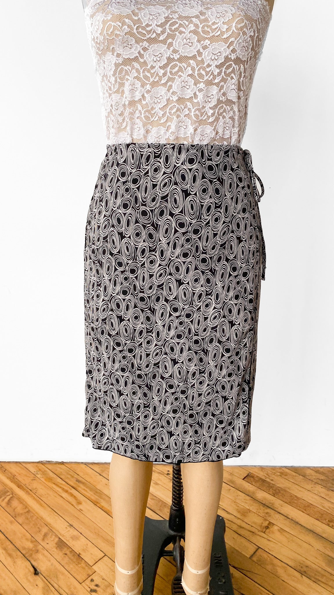 Y2K Black + White Patterned Wrap Skirt sz. M-L