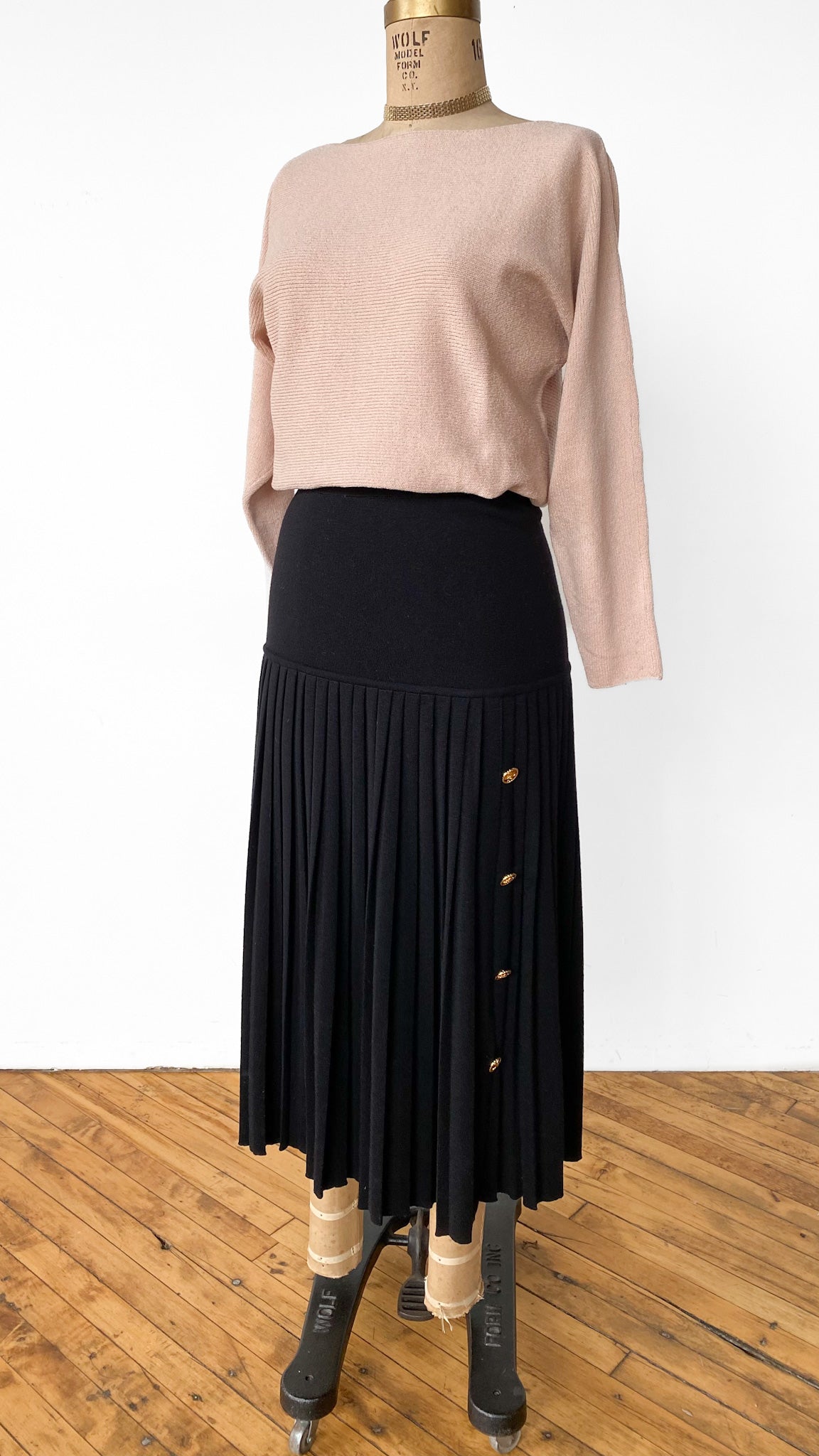 1990s Escada Black Pleated Drop Waist Skirt, sz. S-L